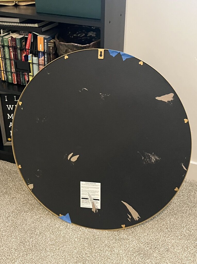 Black standing mirror 64”x20 1/2” $65 Gold circle mirror 28” wide $40