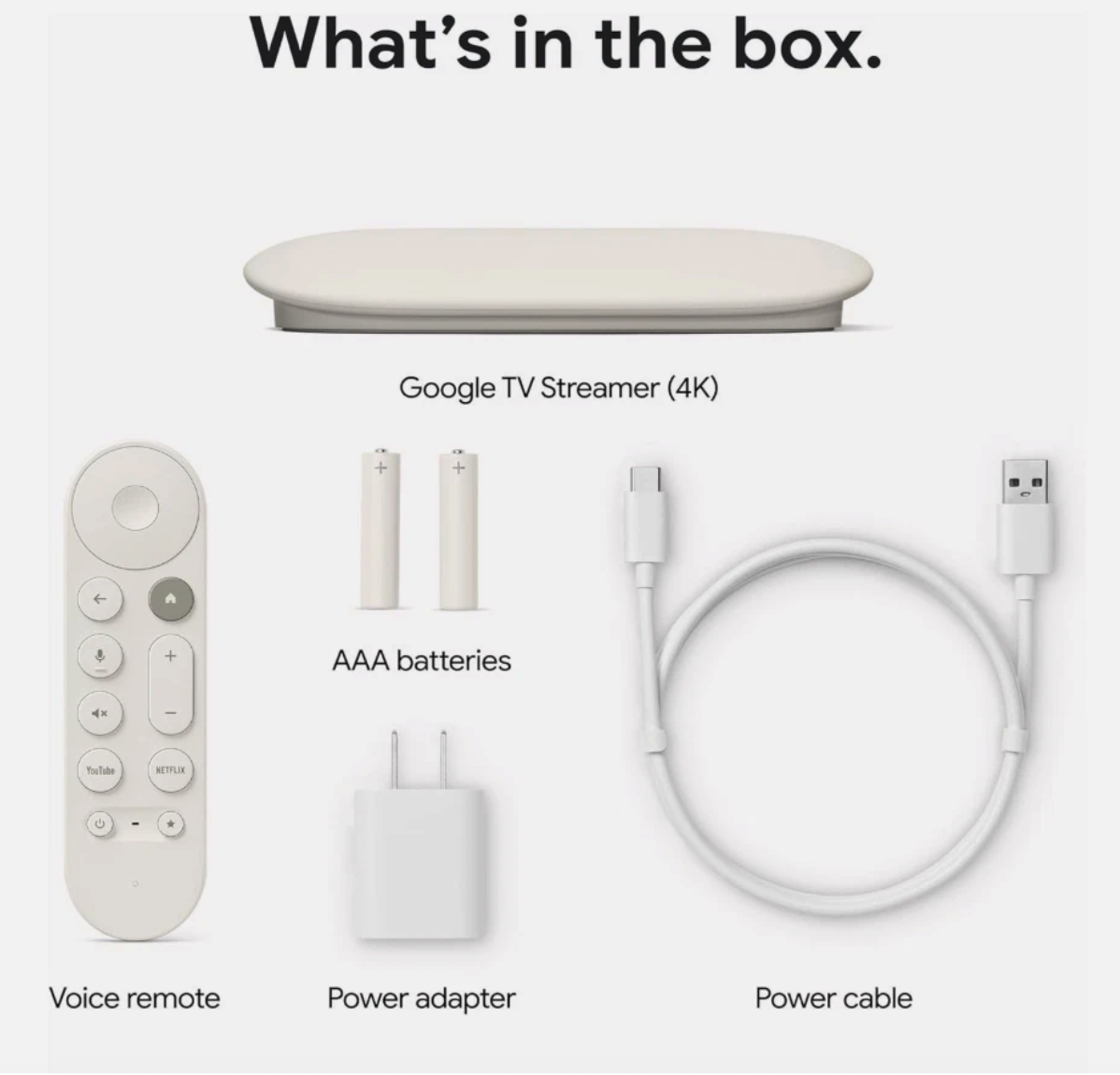 ApplePayBrand new Google TV Streamer (4K) with Dolby Vision, Dolby Atmos, 32GB storage, voice remote, and smart home hub support.