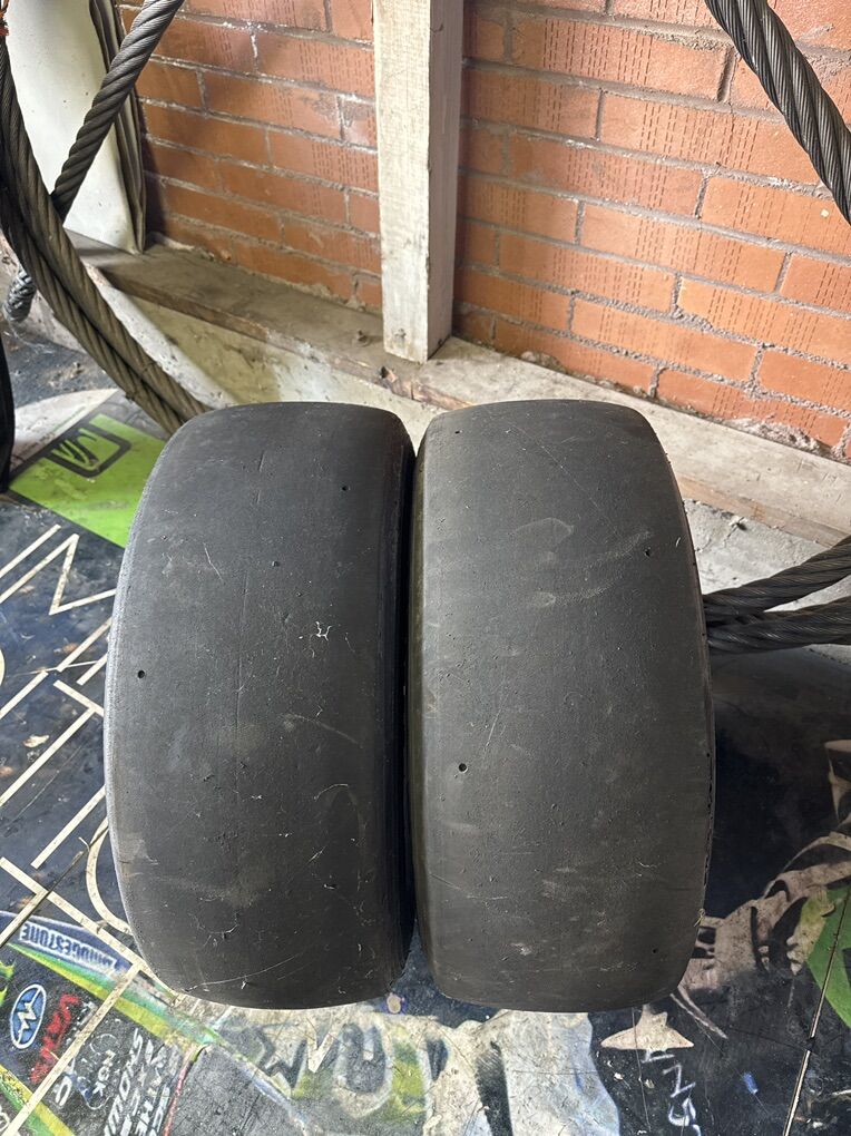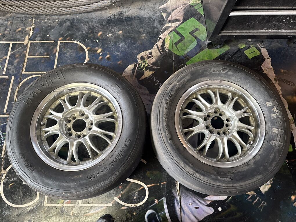 ZellePair of slicks for Mitsubishi or eagle talon. 5x112 and 5x90. Not sure on the 5x90 inside to inside 5x90
