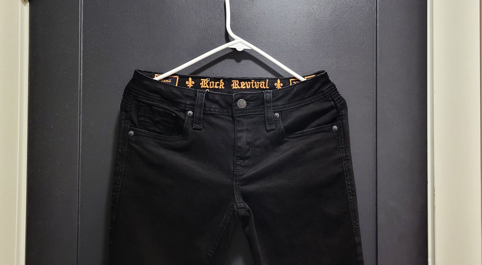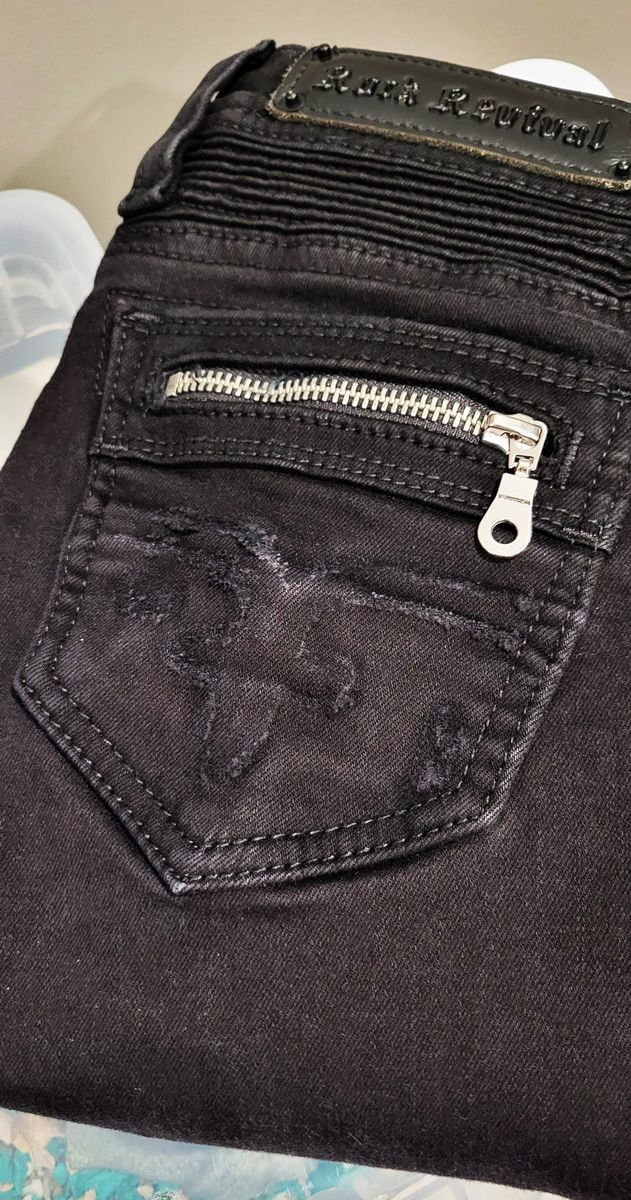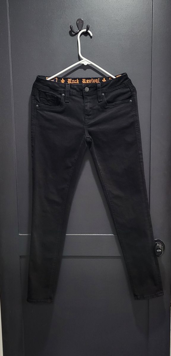 Rock Revival Kamil low-rise skinny stretch Jean. Size 27x30, a 27" waist and 30" inseam. Color in Kamil. They're a low rise, skinny stretch Jean, with zipfly. Slim through the hip and thigh. And have zippered back pockets. They're in perfect condition. (Cash Only)