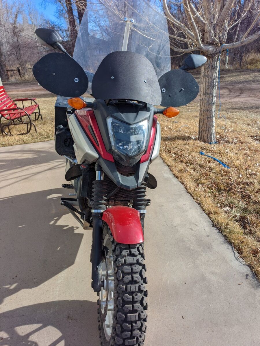 Runs perfect. Needs nothing. 16k miles. This has the manual transmission. Lots of off road mods make it a great adventure bike. Aprillia adjustable shock. Racetech cartridge fork emulators. Huge street knobbies, Raised about an inch for ground clearance. Heavy duty frame mounted skid plate. Hard bags are not removable without tools. 2 aux tanks. Cruise throttle lock. Heated grips, Folding wind shield easily goes up and down. Plus stock short shield and tall puig come with it if you don't like the folding one. These bikes have a huge helmet storage box where the gas tank usually goes. The weight is really low so it doesn't tip over easy like the taller adventure bikes.