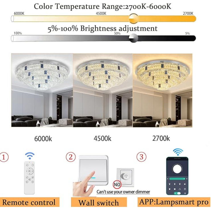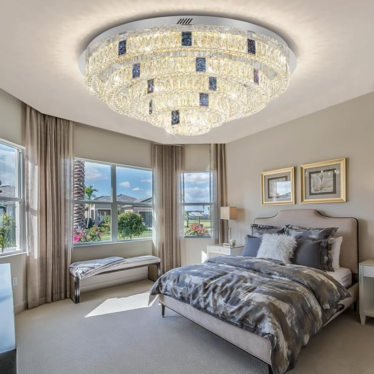 VenmoBeautiful 5-tier crystal flush mount chandelier with chrome/silver finish. Elegant, modern design that adds a luxury look to any living room, dining room, bedroom, or entryway. Bright, stylish, and eye-catching centerpiece.