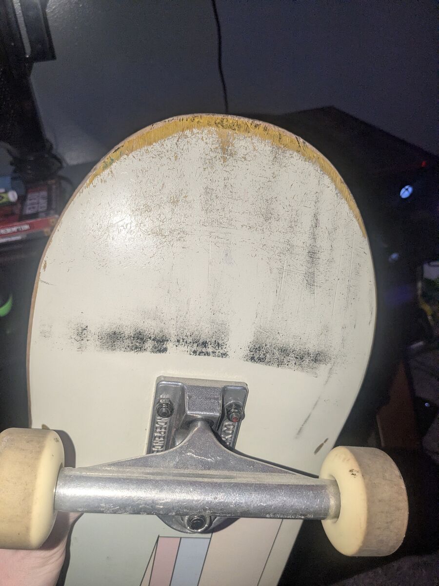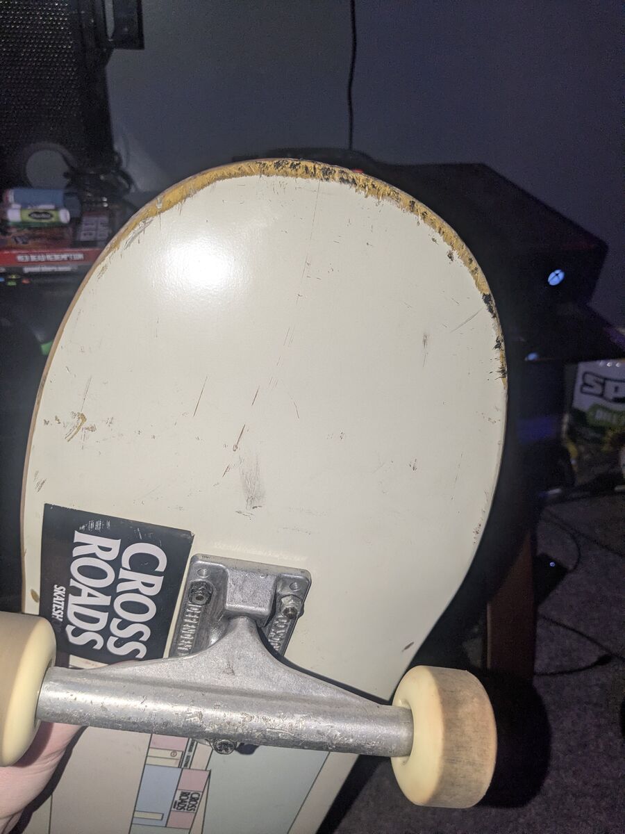 8.0" crossroads deck, bones wheels, independent trucks (dk which ones), and bones red bearings