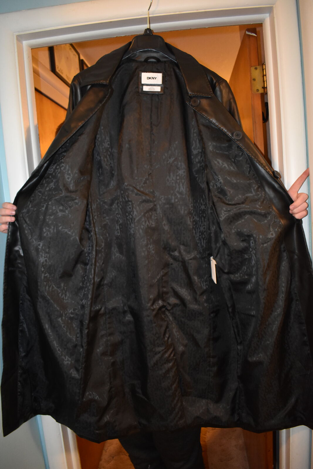 Womens Long Lapel Faux Leather Jackets Trench Dress Coat Blazer Three Breasted Open Front Peacoat with Belt