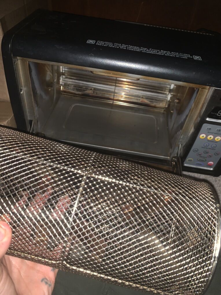 This is a great coffee roaster for personal use, it takes about 10-20 minutes per roast depending on batch size. The gasket on the door is a bit worn, but it’s in great condition otherwise. I recommend only using it outdoors (fire alarm will go off indoors + the smell is very potent).