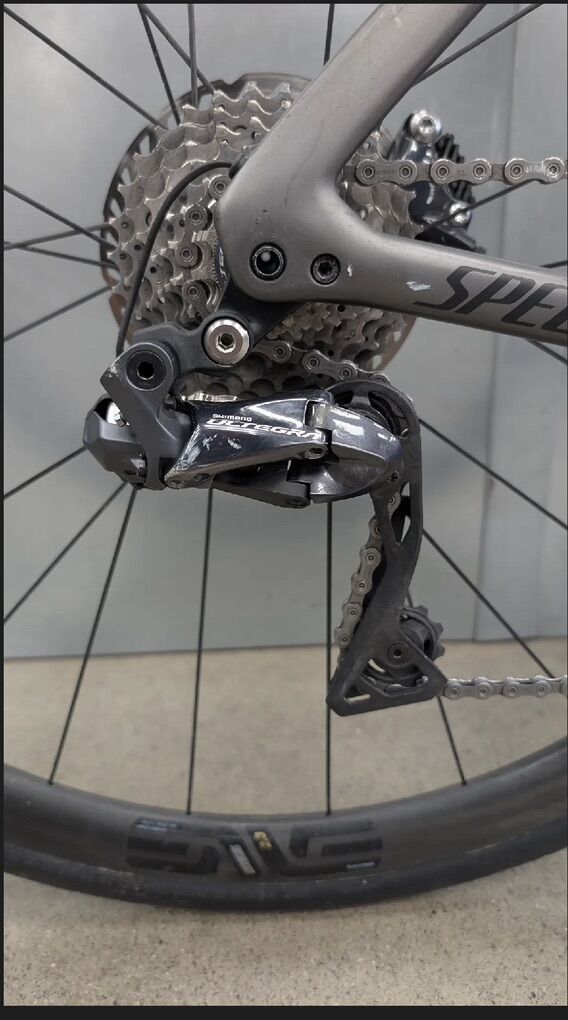 Frame - Tarmac SL7 Fact 10 Size - 56cm Wheels - ENVE SES 2.3 Enve Innerdrive $2,849 Tires- ENVE 29mm Crank - Ultegra R8000 172.5 52/36 Shift Levers - Ultegra Di2 R8070 Rear Derailleur - Ultegra Di2 R8050 Medium Cage Front Derailleur - Ultegra Di2 R8050 Cassette - Ultegra 11-30 Saddle - ENVE Sella Italia SLR