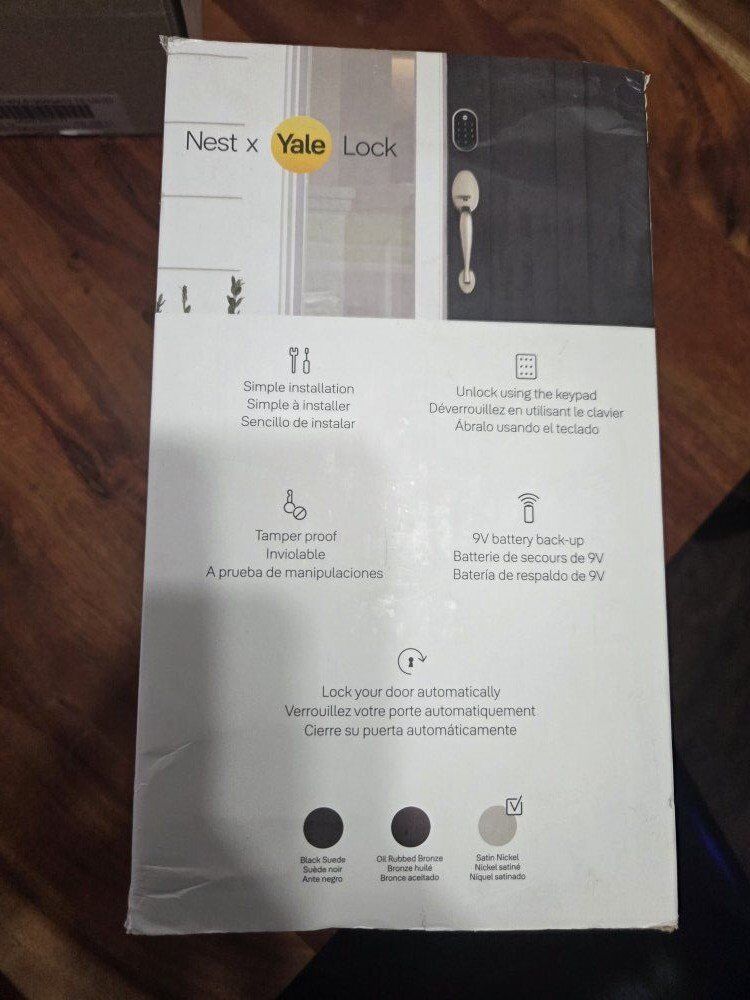 The Nest x Yale Lock is a secure, tamper-proof smart lock for your front door that replaces the deadbolt lock you already have. Keyless entry on the LED keypad lets you lock and unlock your front door without a key. The keypad plays different sounds when it's touched to confirm responses, such as locking, unlocking, or turning Privacy Mode on or off. Let someone in from anywhere. Unlock the door with your phone using the Nest App for easy guest access, or give unique passcodes to family and guests and set a schedule to control when they work.1 Check the status of your door and lock it from anywhere using the Nest App. Or lock it or check your door status hands-free with Google Assistant. The Nest x Yale Lock works on most standard doors. Everything you need to get started is in the box. You can install it yourself in a few steps, or call a pro to help. When you don't want to be disturbed, Privacy Mode disables the keypad so it can't be unlocked with a passcode. Get alerts on your phone when someone locks or unlocks the door or tries to tamper with your smart lock.1 Use one-touch locking on your way out or a passcode on the keypad. With auto-lock, the Nest x Yale Lock can lock automatically when you're away from home.1 Disclaimer: 1.Some features, including mobile alerts, remote control and custom schedules, require the Nest app, working internet and Wi-Fi, and Nest Connect.