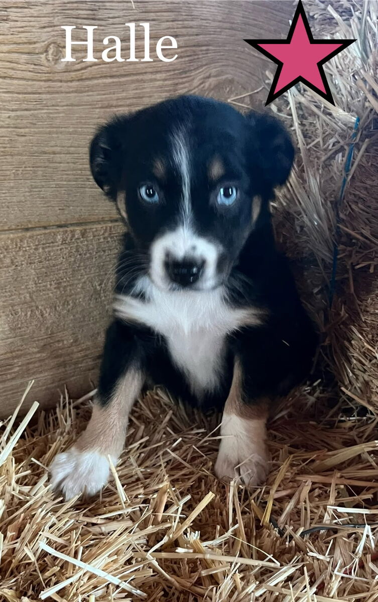 Halle - Black Tri Female with 2 blue eyes $1,500