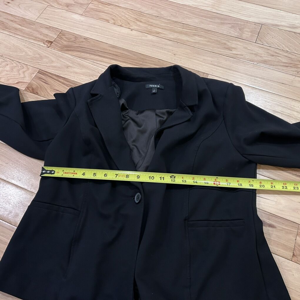 Torrid Chelsea Studio Luxe Ponte Stretch Knit Single Breasted Black Blazer Jacket - Women’s Size 1 (1X - 14/16) - with single button front closure, long sleeves and shoulder pads - great condition - pre-owned.