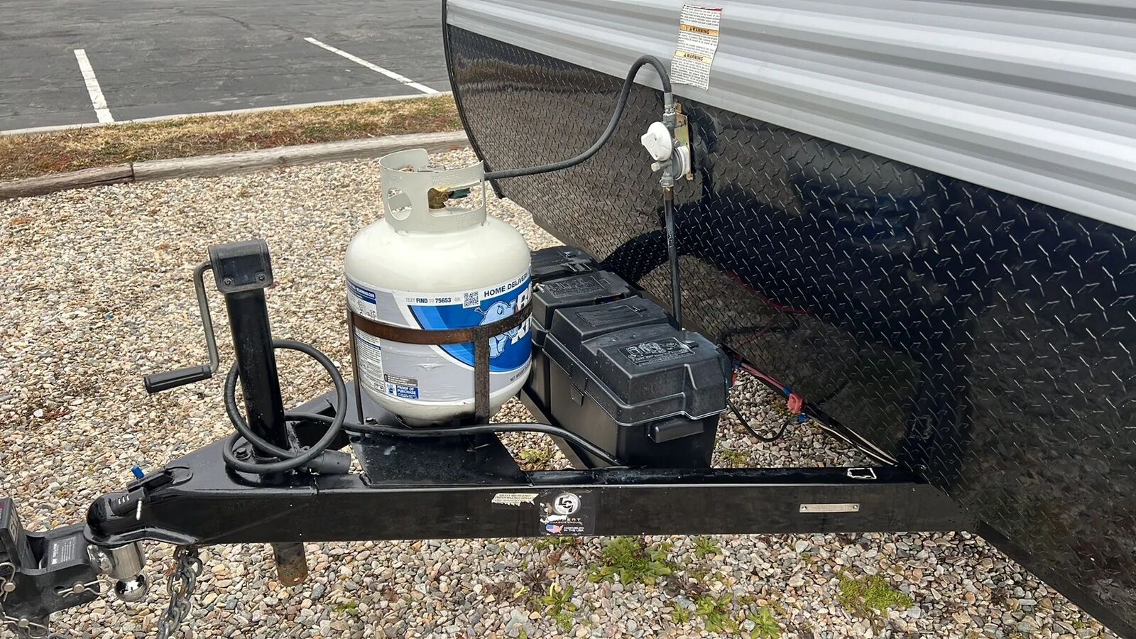 27 Gallon fresh water, 2 Batteries, Single propane tank,
