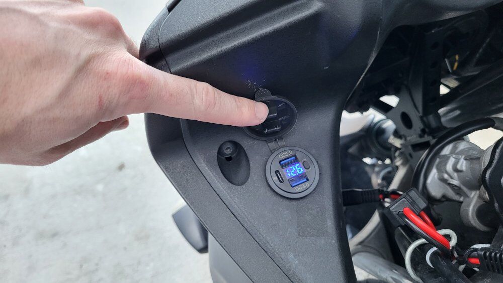stiffer front springs with race tech cartridge emulators tubeless spoked wheels usb plug sae plug abs switch pannier rack, may include soft luggage. rear rack, may include top box crash bars bark busters skid plate adjustable windshield adjustable rear suspension links. 0-2" raised set to about 1.5" over stock. also comes with 0-2" lowering links.
