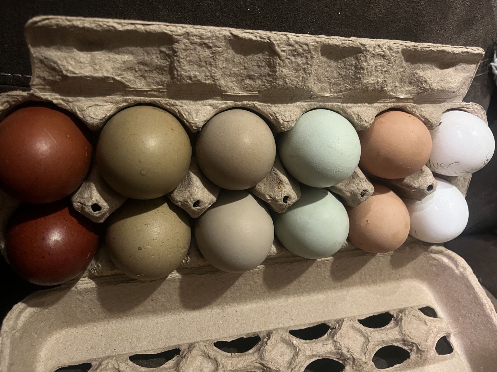 Variety Dozen Limit : No more than 2 moss eggers, 2 deathlayerrs, and 2 copper marans.) $24/dozen. If you would like more than 2 of a specialized breed you pay the individual egg price for the extras.