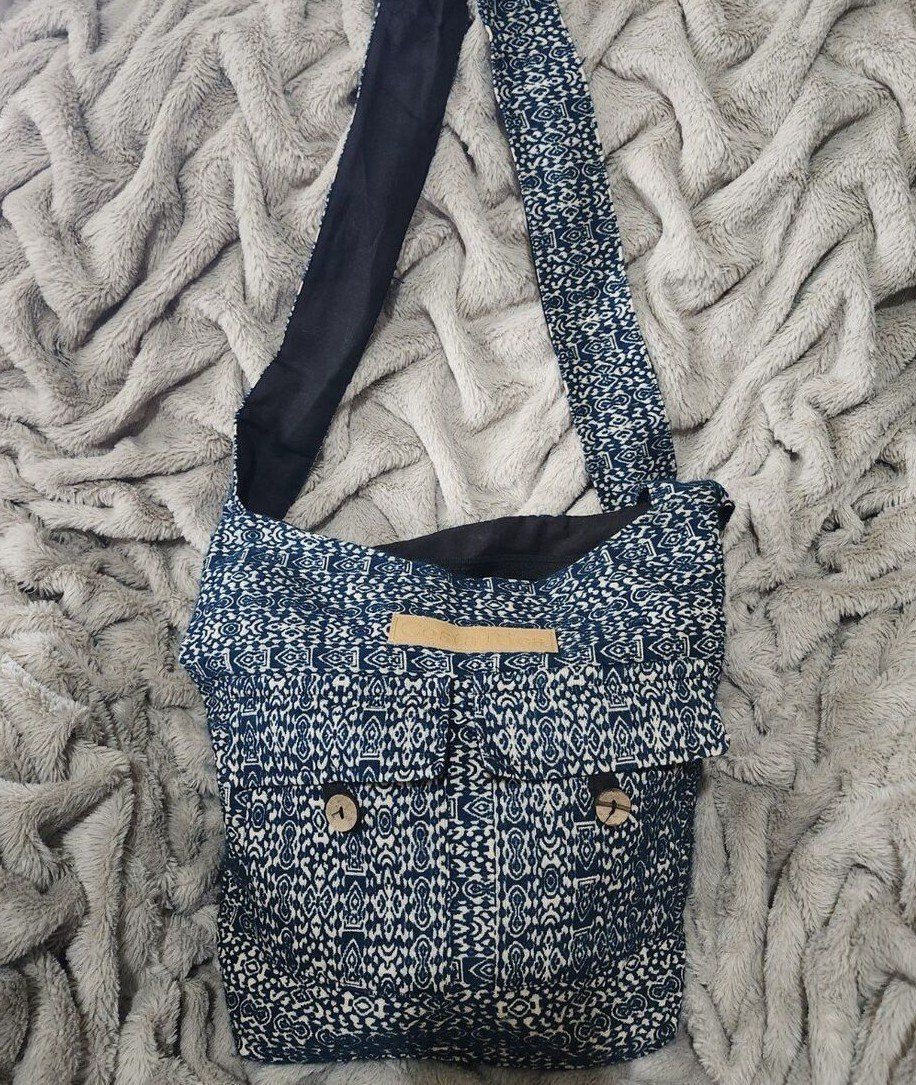 Includes: • Long crossbody strap -Two front pockets -Zippered main compartment • Large cream zip-up pouch (perfect for makeup, toiletries, or everyday essentials). Clean, lightweight and very practical. Neutral blue and cream tones make this an easy everyday or travel set. Smoke-free home.