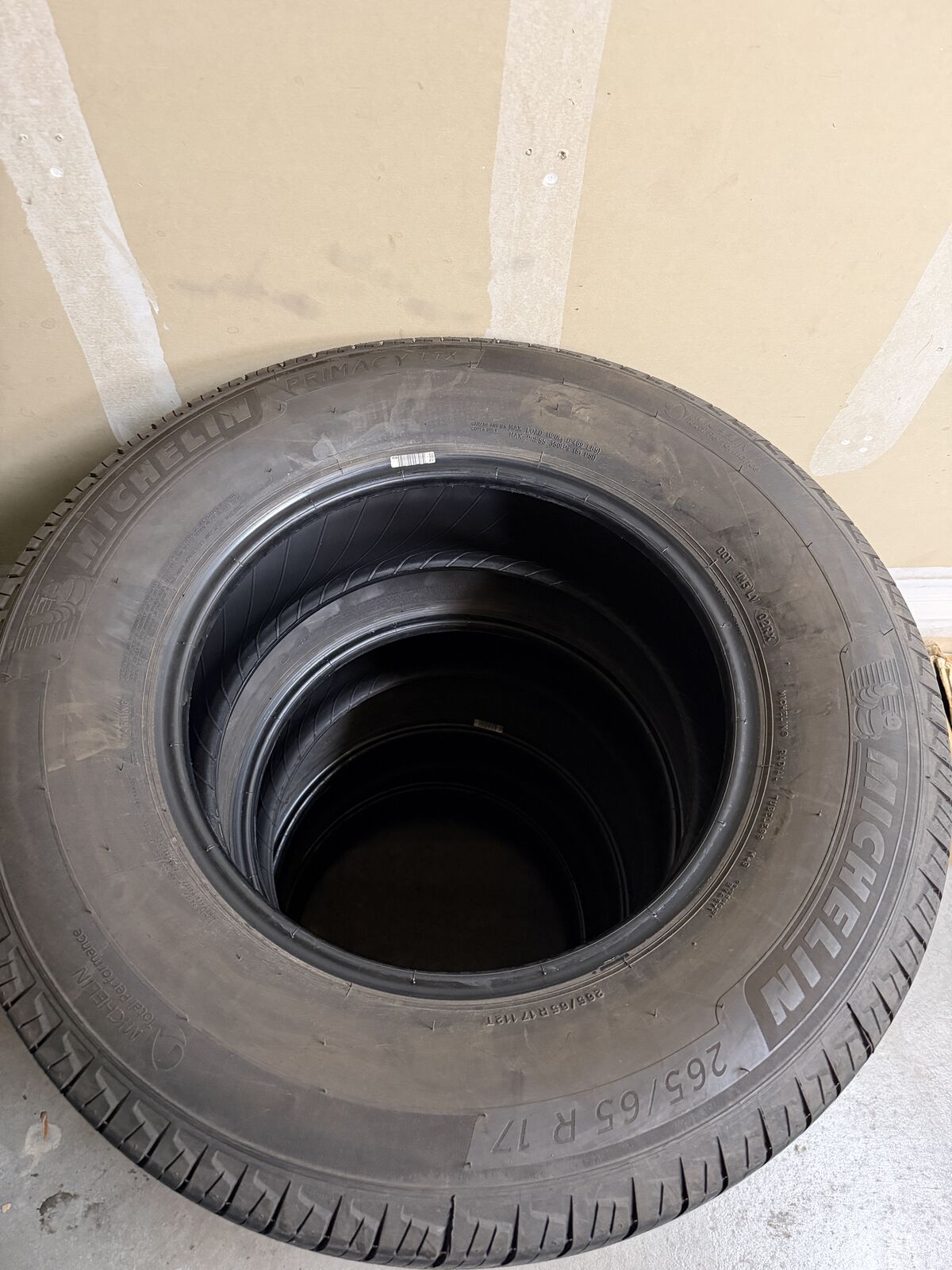 VenmoSelling my Michelin Primacy LTX tires. They are size 265/65r17. These are basically brand new. They have 2,100 miles and excellent tread still on them. I'm selling these because I bought All Terrain tires. $300 or best offer.