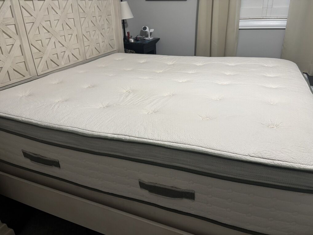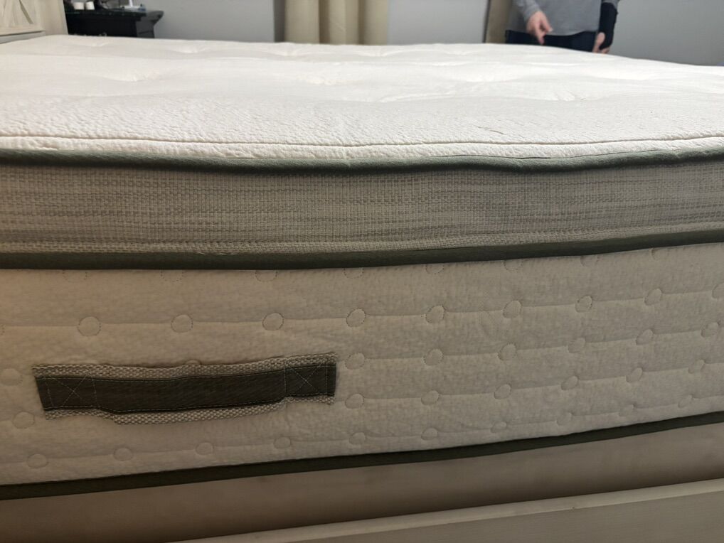 Great condition. Perfectly clean. Only used with mattress cover the entire time. We love Avocado but wanted something softer.