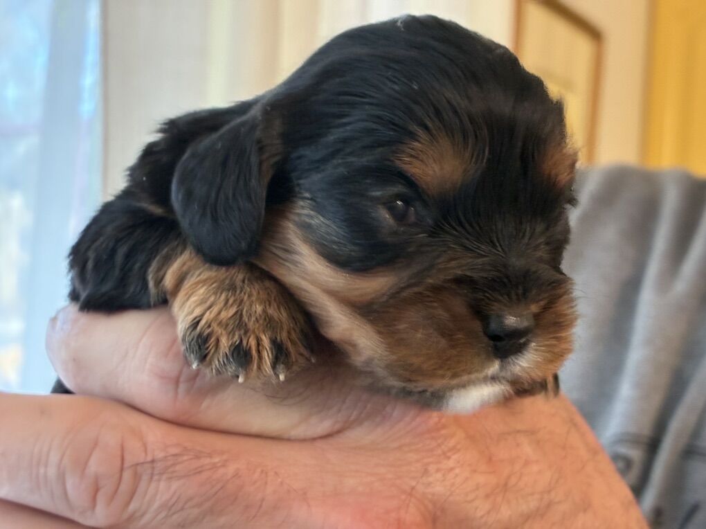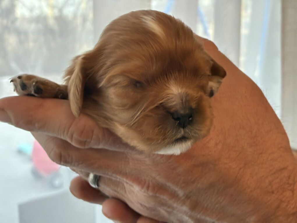 ApplePayAdorable AKC Cavalier King Charles puppies will be ready for their forever homes mid-March! Raised in a loving family with mild-tempered parents, these pups have been socialized with small children and household noises for confident, happy personalities.