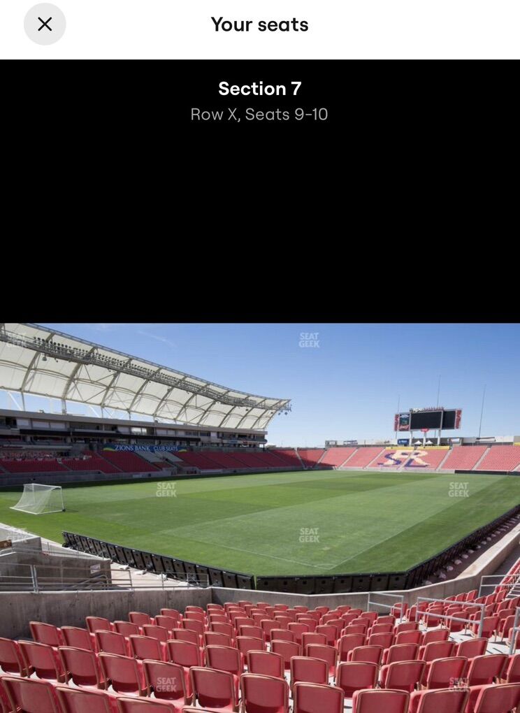 I have 2 tickets to see RSL take on Messi and Miami. Tickets are in Section 7, Row 24. Great view of the full field. Price is per ticket. Can transfer in person to make sure tickets are legit.