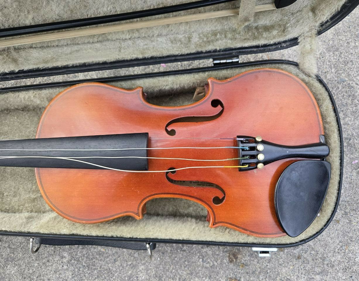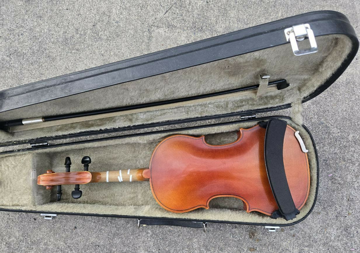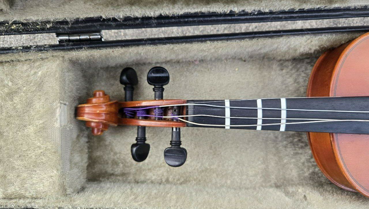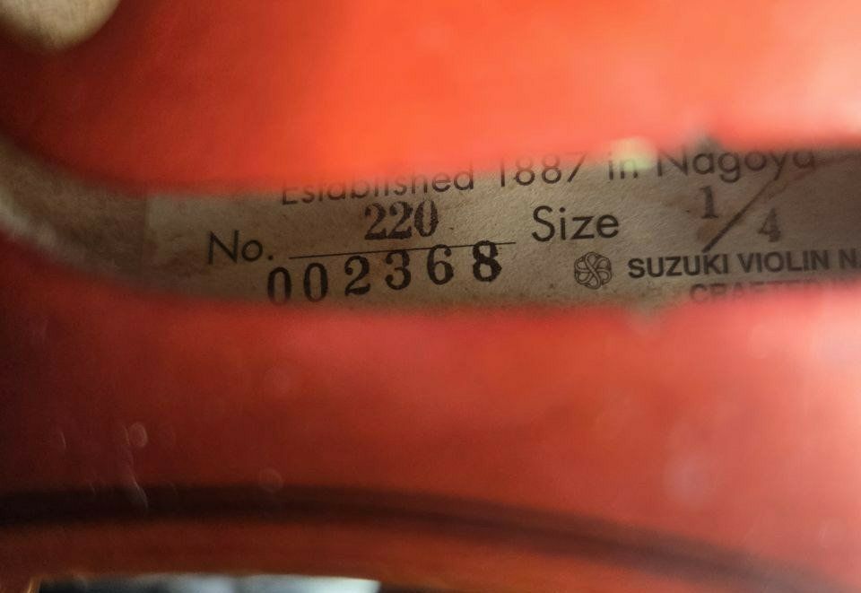 VenmoGreat used kids Suzuki Nagoya Model 220 1/4 Size Violin. Comes with a Solid Spruce Top and hard black Suzuki carrying case. This beautiful instrument is in good cosmetic condition with few scratches from use. Comes with bow. Will possibly need a few new strings and bridge reattached/glued into place. I have the bridge piece. The Suzuki 220 violin features a spruce wood body for the headstock, back, and sides, contributing to an excellent and full tone. The violin case has a soft interior lining and organized space for the violin, bow, and rosin, ensuring protection and portability. Great violin and case for a beginner!