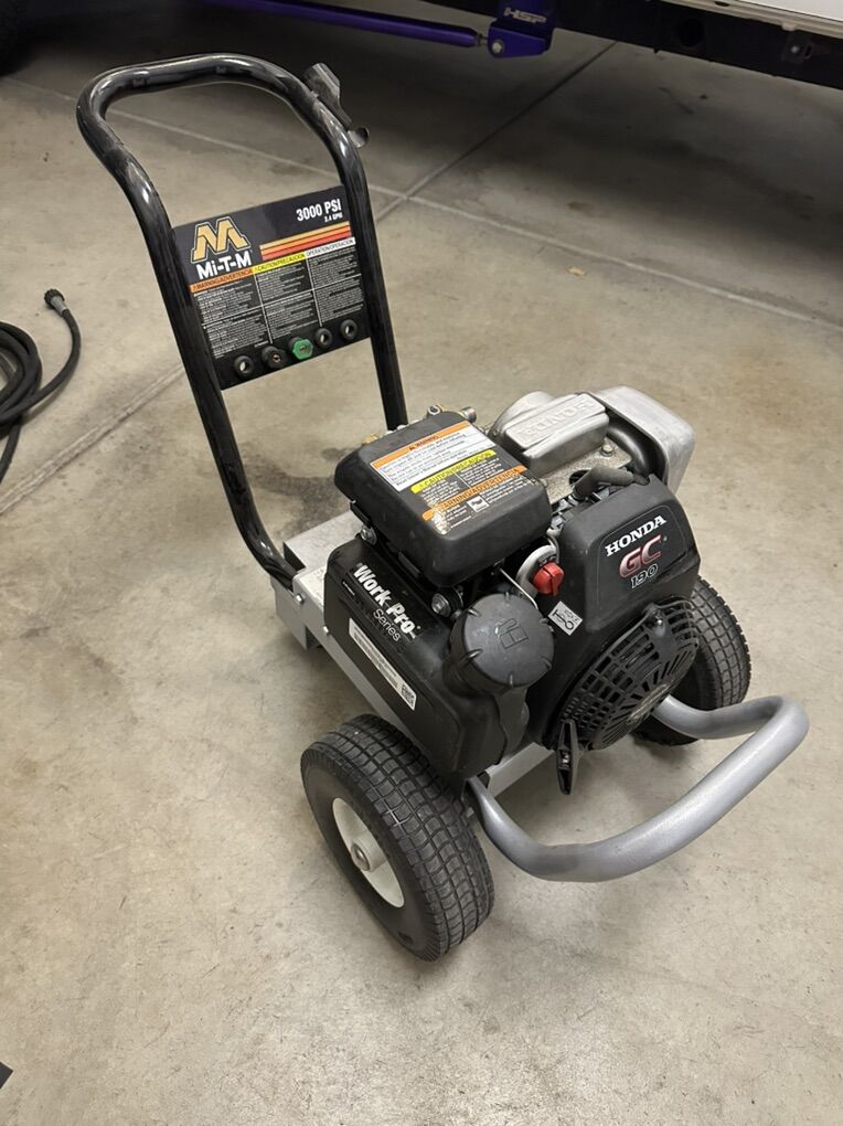 ApplePayModel WP-3000-0MHB with the Honda GC190 motor. 2.4GPM. Pressure washer is in great shape. Was used in a warehouse and now just takes up space in my garage. Comes with hose, gun, and nozzles. These models are Known to seep a little oil out of the bottom seal on the metal plate mount. Little bit of silicone should do the fix. Still works great. O.B.O
