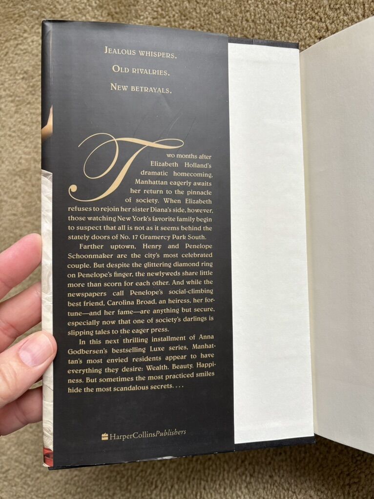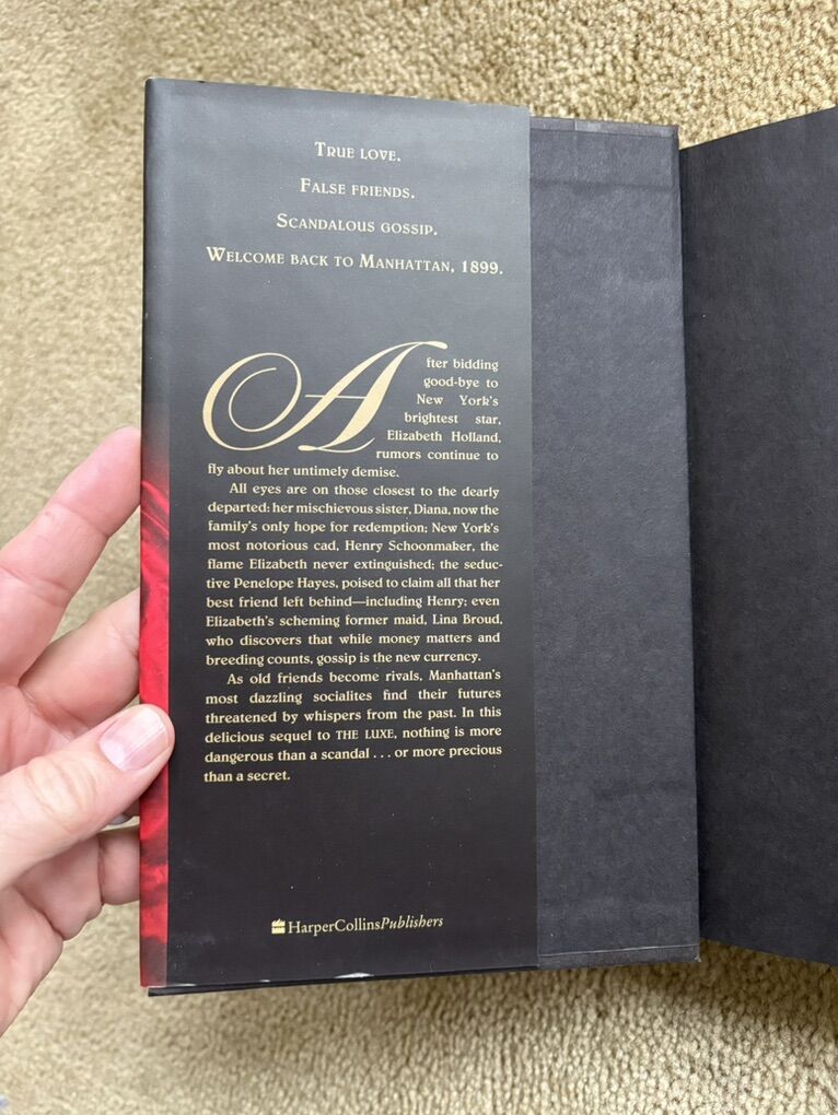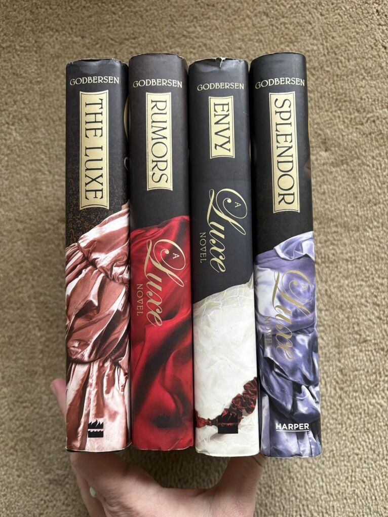 The Luxe Complete Series, books 1-4, by Anna Godbersen: The Luxe (2007, 433 pages), Rumors (2008, 423 pages), Envy (2009, 405 pages), and Splendor (2010, 391 pages). First edition hardcovers in excellent condition, including dust jackets. Text only. Cash or Venmo.