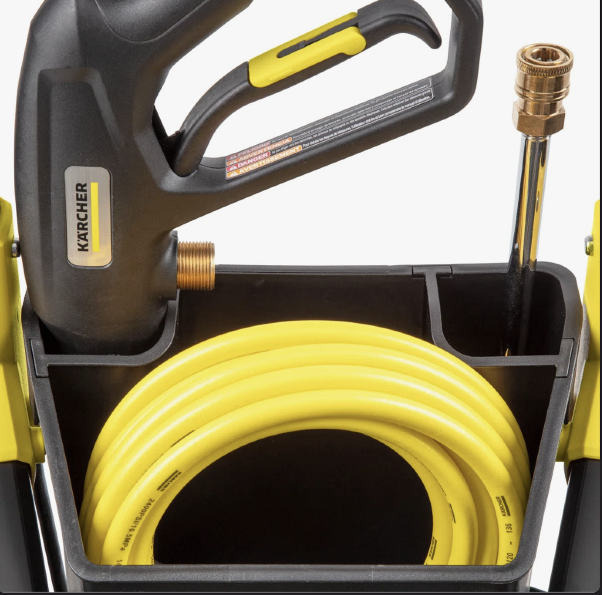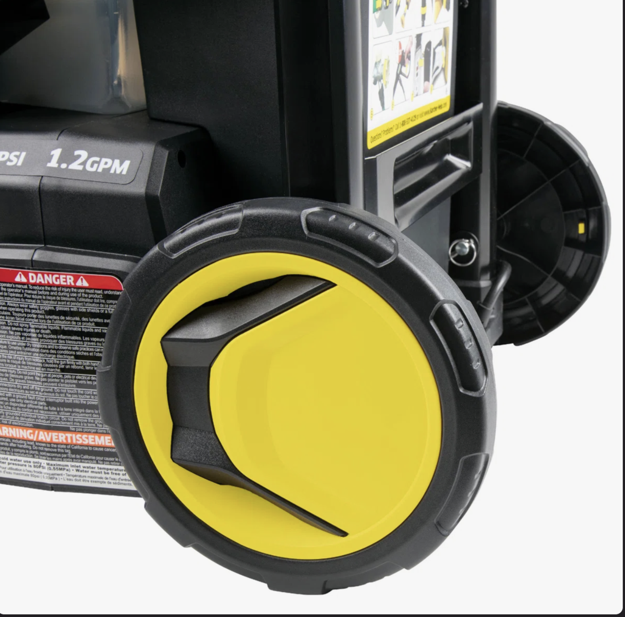 Delivers 1800 PSI of TruPressure to ensure high level of cleaning power. TruPressure driven by a reliable universal motor. Large half gallon, removable detergent tank. Three spray nozzles - Turbo, 15-Degrees, Soap. Standard M22 hose connections simplify nozzle and accessory usage. Professional-grade spray gun and wand. Handy storage bin stores accessories. Black aluminum frame makes the K1800PS highly durable. Integrated water filter. Unique on off foot switch. Flow rate 1.2 ga lper min. Power 120V, 60Hz, 13A.