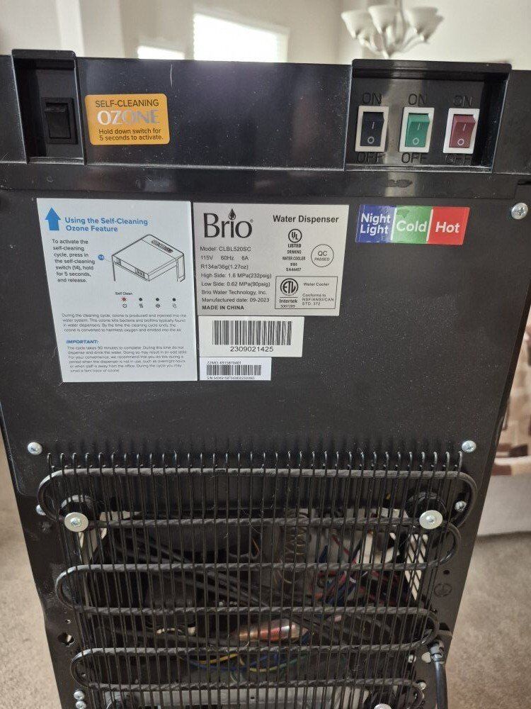 VenmoI bought the Brio water cooler 2 years ago new. It is bottom loading and is self sanitizing using ozone technology. The water pump is a little noisy when dispensing water but everything works fine.