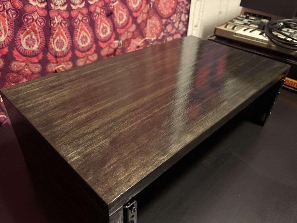 VenmoFor sale is a rack cabinet and riser that I made to hold my preamp and monitor amp. Made out of pine with an ebony stain and finished with a “rustic” gloss polyurethane. Perfect for a compact studio desk setup. Includes Navepoint 3U rack mount rails installed and ready for your rack units.