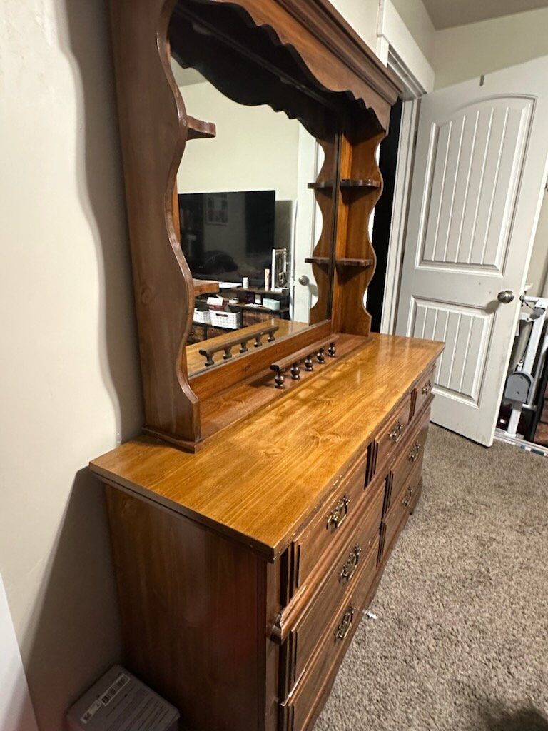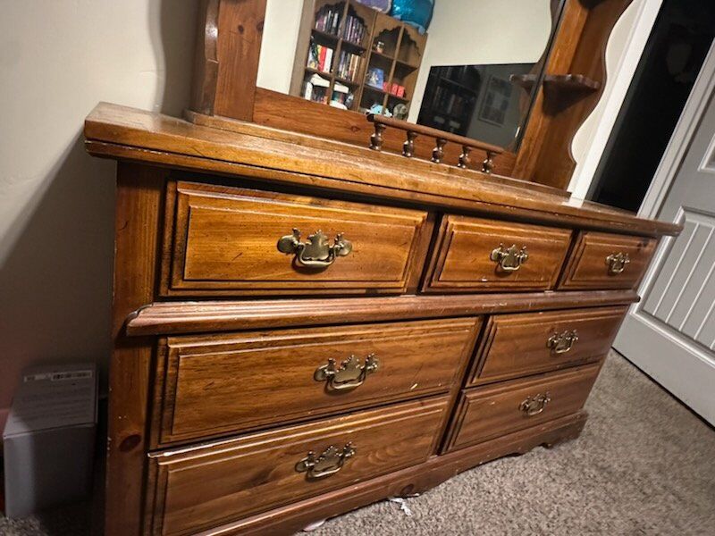 ApplePayThis 1970s solid real wood dresser. No major damage, comes with all drawers and all work well.
