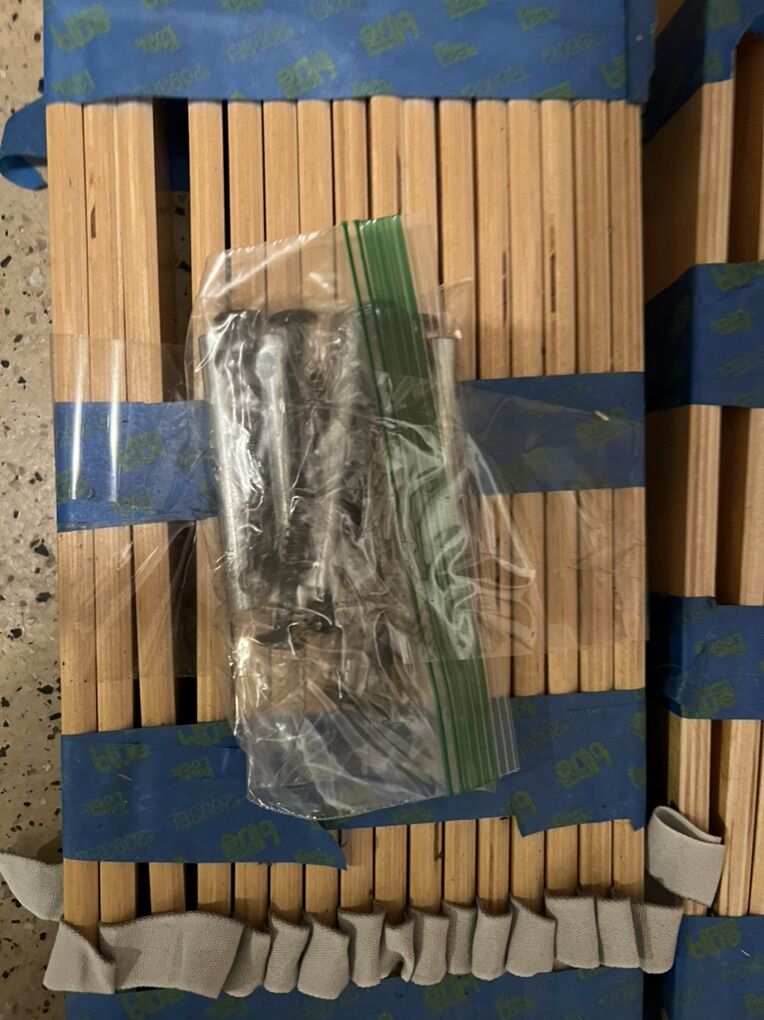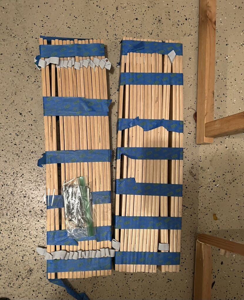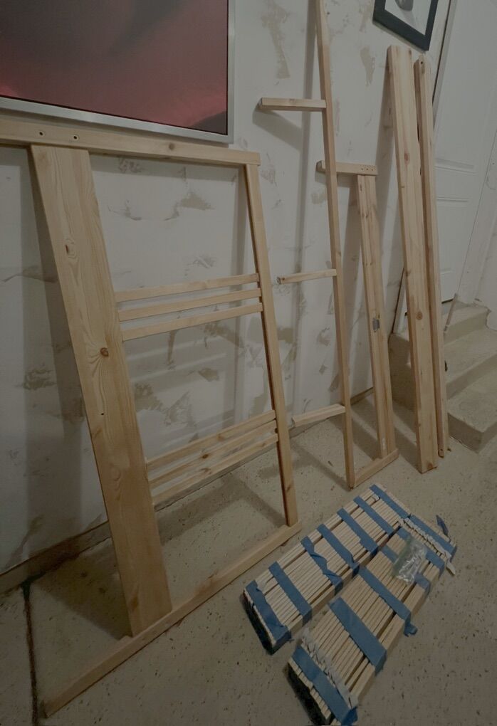 ApplePayIKEA solid wood bed frame in natural pine finish. Includes headboard, footboard, side rails, center support beam, and full slatted base. All hardware included. Disassembled for easy transport. In great condition with minimal wear. Easy to assemble. $25.00