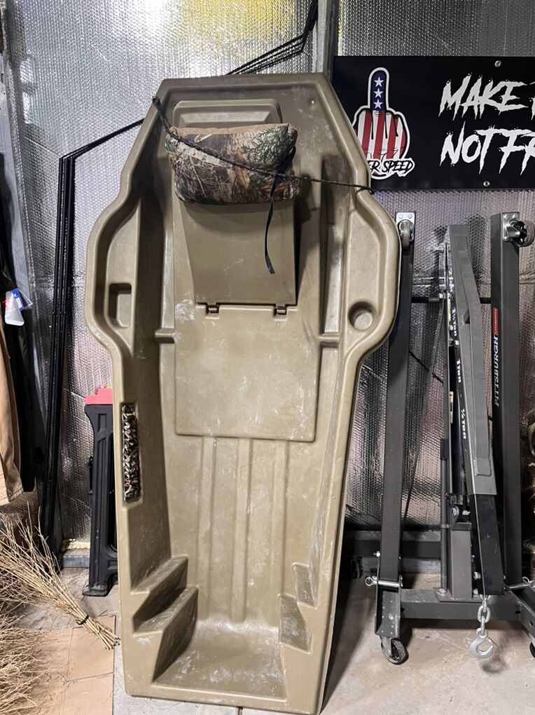Beavertail predator XL coffin layout blind. Used this a few times in the fields and dont like how high it sits. I put new springs behind the backrest because one of the originals was bent. Great condition!