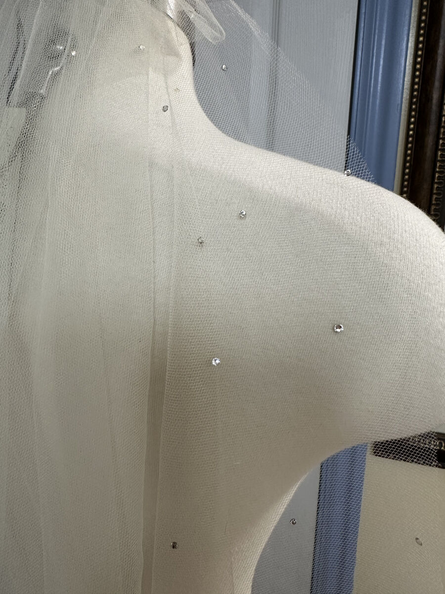 VenmoTiny rhinestone add sparkle to the sides of this 58" single layer bridal veil on comb.