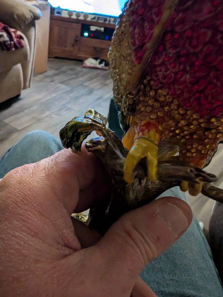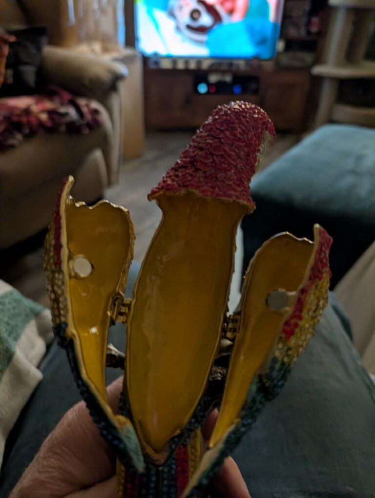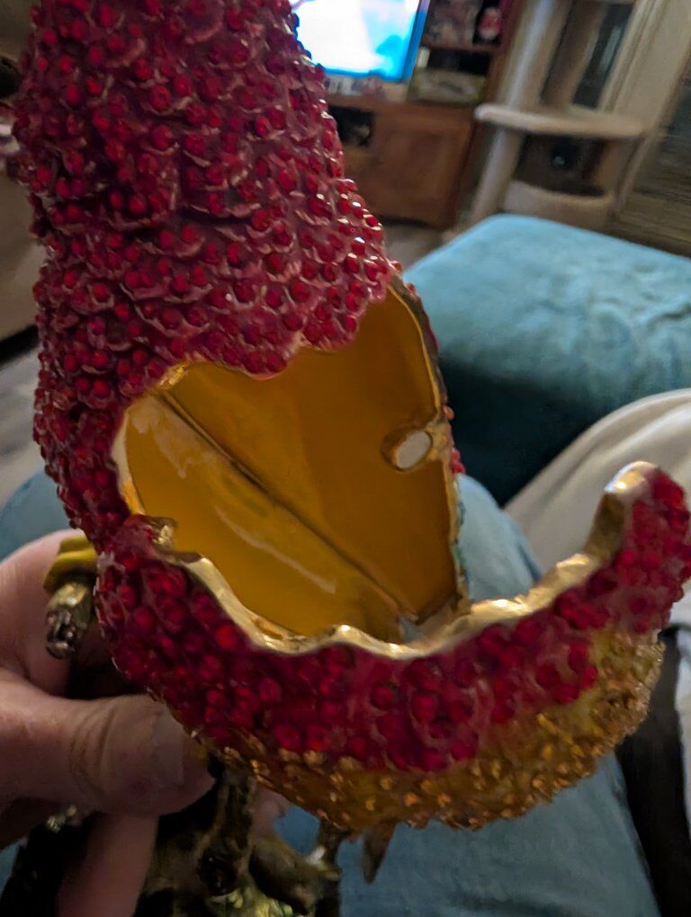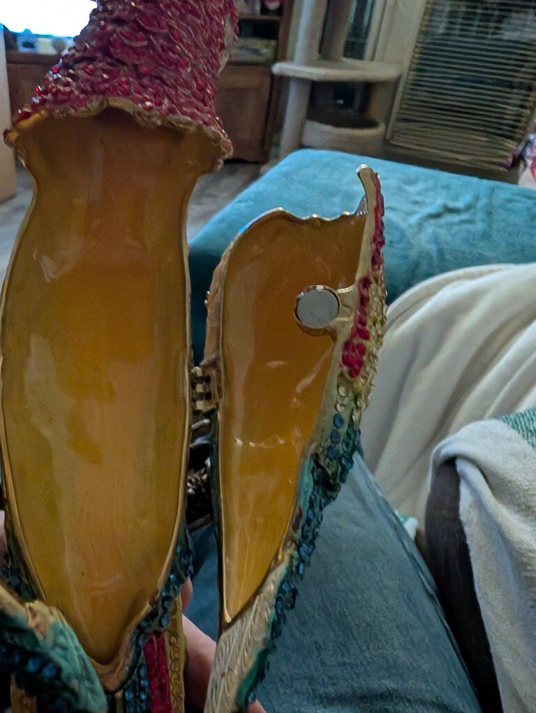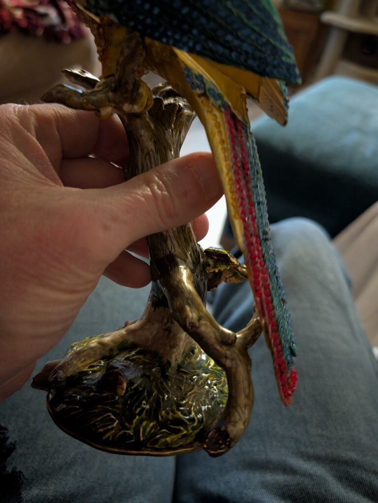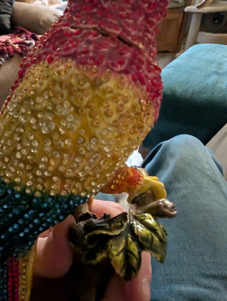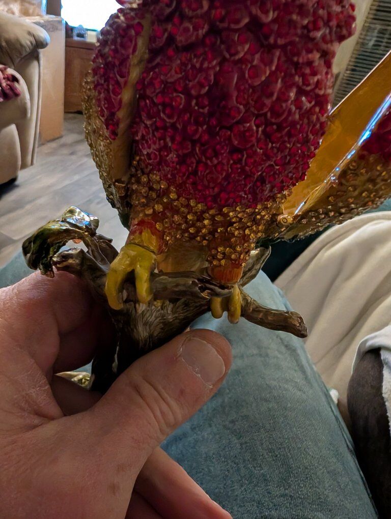 PayPalThe product is a beautiful parrot figurine with wings that open. This collectible item features a realistic design of a parrot, a popular bird species known for its vibrant colors and unique characteristics. Perfect for bird enthusiasts or collectors, this figurine adds a touch of elegance and charm to any space with its lifelike appearance and attention to detail.This item appears to be a collectible trinket box designed as a crystal-encrusted parrot figurine, specifically resembling luxury pieces from brands like Jay Strongwater or Keren Kopal. 200 or best offer. Will ship world wide.