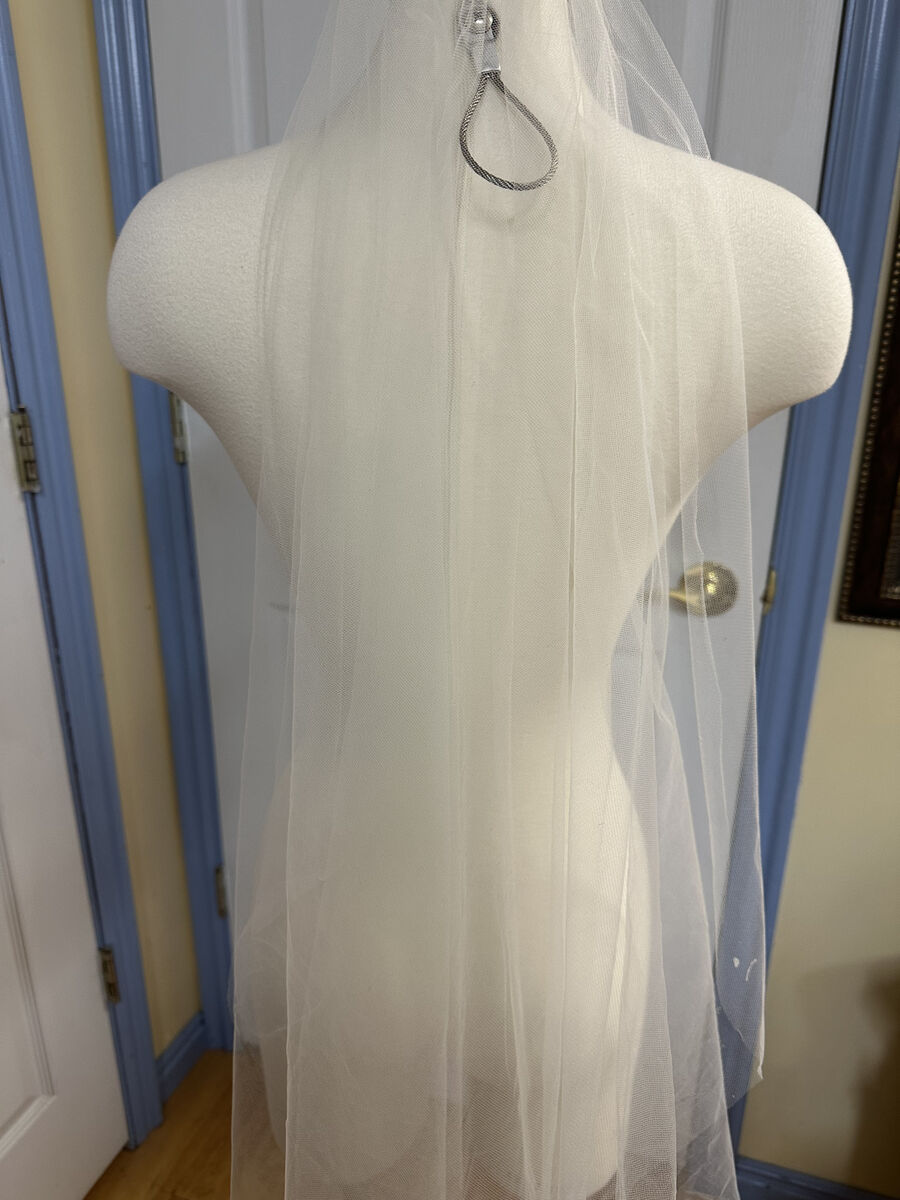 VenmoThis veil in ivory is a single layer attached to a metal comb. Made of soft, fine netting. It is 40" from comb to bottom.