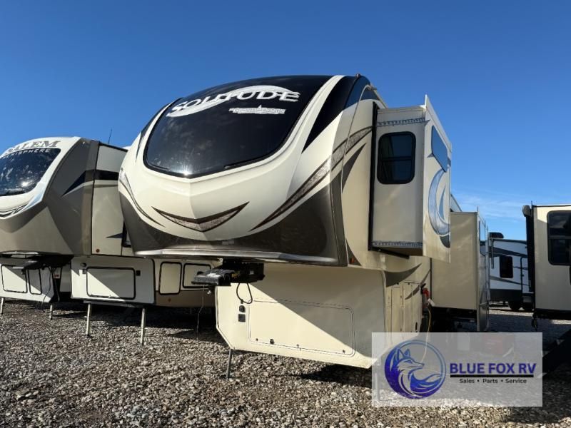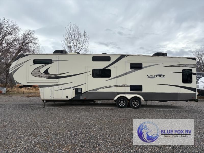 With each Solitude fifth wheel by Grand Design you will receive affordable luxury for your extended stays or weekend get-a-ways. From the solid foundation including a Equa-Flex suspension to the taller ceilings, taller and deeper cabinets, the power reclining theatre seating with swivel table including a heat and massage function, a pet dish drawer, a Stealth AC system, and the Weather-Tek package which allows you to travel any season you choose. It's time to enjoy luxury living where ever you decide to land.