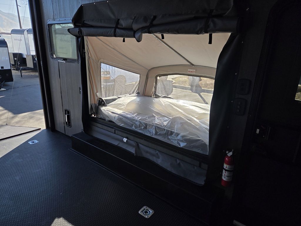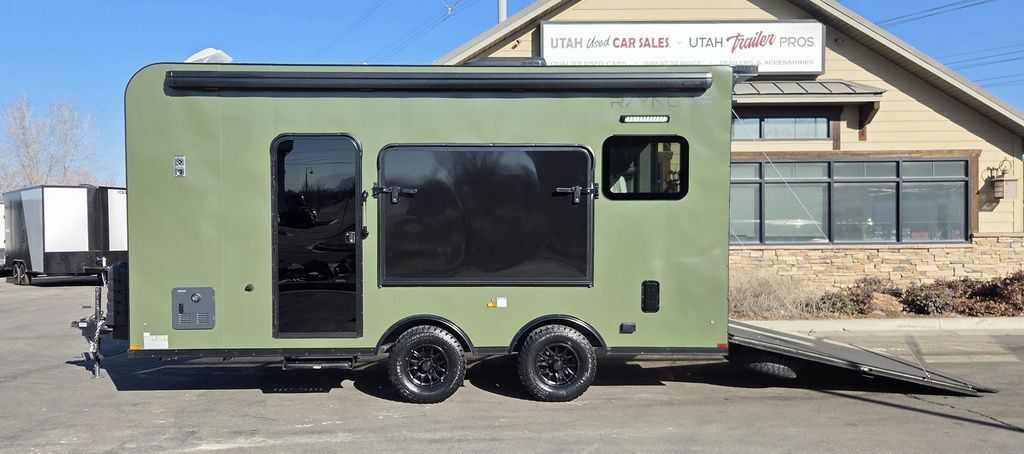 LIMITED TIME $452 A MONTH WITH ZERO DOWN WITH OUR SPECIAL LOCAL CREDIT UNION PARTNER!!! NO PRE-PAYMENT PENALTIES!!! NEW FULL BATH/HALF KITCHEN!!! SELF CONTAINED TOILET, SHOWER, FRESH WATER TANK, WATER HEATER, WATER PUMP, SINK, COOKTOP AND MORE!!!! NEW MODEL!!! WILL FIT ANY STOCK SIDE BY SIDE UTV!!! RAYNGER PREMIUM OFF ROAD TOY HAULER CAMPER!!! 10K GVWR, 5,200# AXLES!!! 18 INCH GROUND CLEARANCE!!! OFF ROAD TIRES!!! FULLY INSULATED!!! HEATING AND A/C!!! WET SOUND STEREO!!! THREE FOLD OUT/POP OUT TENTS WITH MATTRESS!!! CARGO BASKET!!! LED LIT AWNING!!! 87 Inch Rear Entry Height/90 INCH INTERIOR HEIGHT!!! 95 Inch Rear Entry Width!!! Aluminum Ventilated Locking Generator Box!!! UPGRADED TORSION AXLES!!! And Much MUCH MORE!!! Check out our Specs!!! 16 Foot and 18 Foot Models will fit ANY stock 4 Seater Side by Side • 6” I Beam Frame• Flat Top Design• Flat Front Design• Wall Posts 16” on Center• Cross Members 16” on Center• Roof Bows 16” on Center• Rust Inhibiting Z-Tech Protection on Chassis• Ameraguard on Tongue• Ameraguard on Rear Bumper• Ameraguard Around All Door Openings and Stepwell• Ameraguard Around Edges of Ramp Door• 3500 LB Spring Axles• 2-5/16” Coupler• One-Piece Aluminum Roof• ST235/75R15 Aluminum Wheels with Chrome Center Caps• 2000# Ramp Door with Eberhard Latch• 30” Tempered Glass RV Door with Screen Door• .030 Exterior Metal with Screwless Sides• 24” Black Stoneguard• 3” Black Bottom Trim• Sand Pad• Black Door Hold• 2.7mm Charcoal Textured Vinyl Ceiling • 9mm Charcoal Textured Vinyl Walls• 3/4” Engineered Wood Floor with Rubber Coin Overlay• (6) 1200 LB Floor D rings Installed with Backer Plates• LED Clearance Lights and Tail Lights• LED Back-up Lights• No Show Wheel Box• Spoiler with Toggle Switch• RV Step• 7’ Interior• (2) 17” Chrome Base Lights with Switch• (1) Black 17” Spot Light with Switch• (1) 30 Amp Panel with Marine Plug• A/C Unit with Heat Strip• (3) Interior Recepts• (1) Exterior Recept• 12V Battery and Charge Line• Prep for Backup Camera• Wet Sounds System• (3) Blue Interior Cabinet Lights• (1) 6’ Section of Flex Lights• Black ATP Rear Header and Hoop• Black ATP Fenders• Insulated Walls & Ceiling• Base Cabinets• Overhead Cabinets with Netting Over Compartments• Pop Out Tent• Black ATP Storage/Generator Box Mounted On Tongue 7TW098137