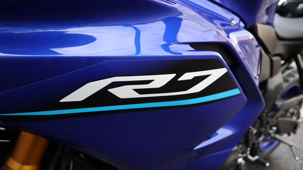 Sharp aerodynamic bodywork features a compact front fairing, slim contoured side fairings, aerodynamic winglets, and LED turn signals integrated into the mirrors, finished with Yamaha R-Series DNA throughout.