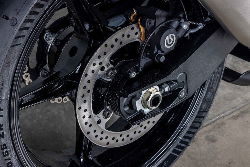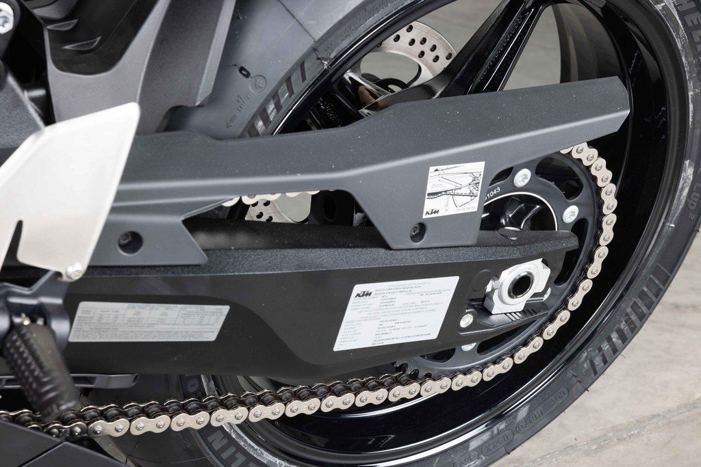The KTM 990 RC R has two strong characteristics: it's a saliva-inducing track tool as well as an acute expression of sports performance for the street with all the criteria necessary. To these ends the chassis geometry is weighted and fixed accordingly with an emphasis of 52.5% to 47.5% front/rear. The offset is measured at 33 mm with a steering angle at 25 degrees (per side) for improved steering sensation and a planted front end. The aluminum diecast swingarm with a linkage construction brings increased flex for better stability, and manageability for bumpy track and street surfaces, of this 405.6 lb/184 kg (dry weight) rocket.