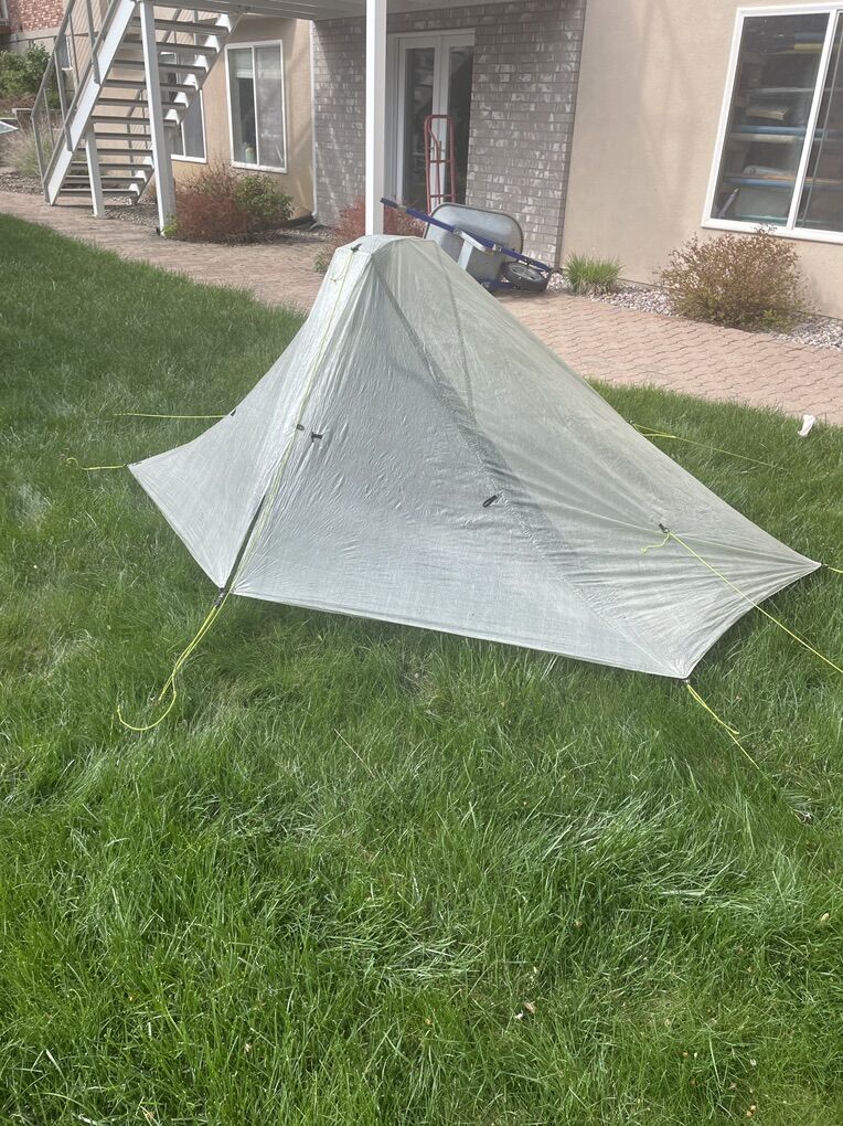 VenmoGreat ultralight one person backpacking tent. Less than one pound. Great condition. No holes. Slept in about 8 nights.