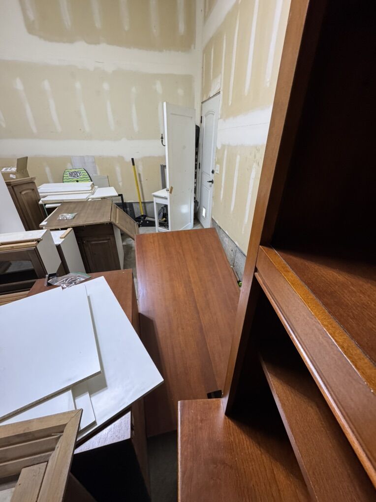 The photo of the desk is what it looks like put together not the actual desk as it has been taken apart.