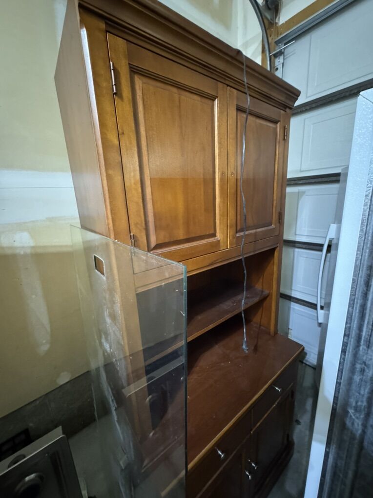 VenmoSolid wood nice piece of Thomasville furniture. Has the computer desk with an additional cabinet. Found a Bookcase measures 18”d x 34”w x 79.5”h—5 shelves each 15”d. Double file cabinet is 22”d x 34.5”w x 32”h. Corner piece is 34.5”w x 22”d x 32”h (2 shelves). Desk measures 33”d x 30”h x 5’w. Glass top; each side of desk has drawers so can be used by two.