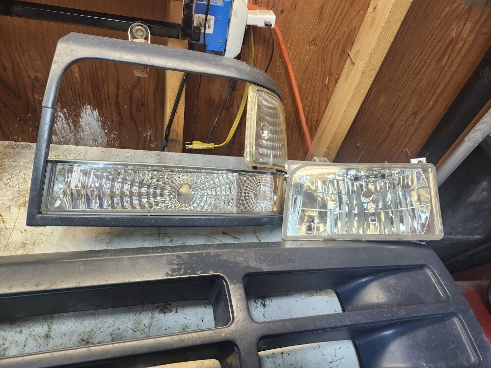 obs ford grill headlights and grill for 92-97 Ford. Good condition. one bezel has a crack F150 F250 F350 F-150 F-250 F-350