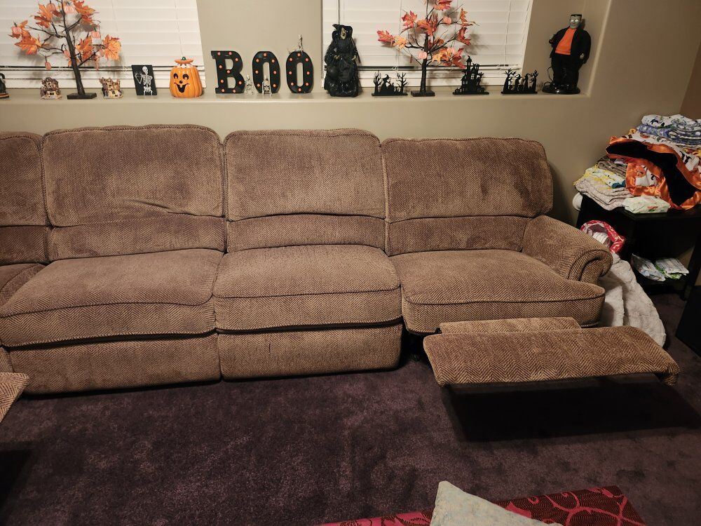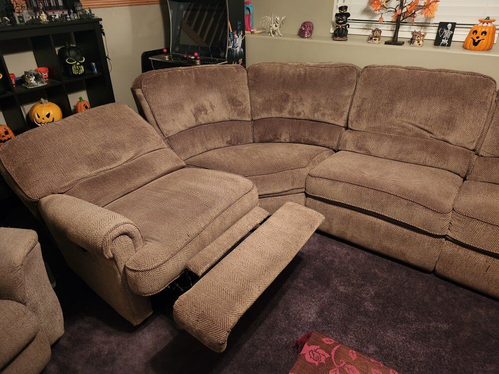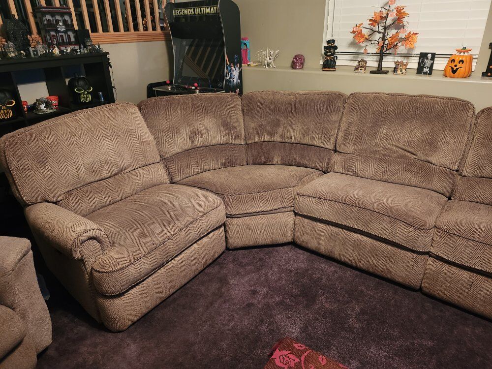 Venmovery nice sectional couch for sale. both ends recline. One side is electric and the other manual. no damage or rips in furniture. it is a five piece sectional. $300 firm. Chris @ 801-910-6890