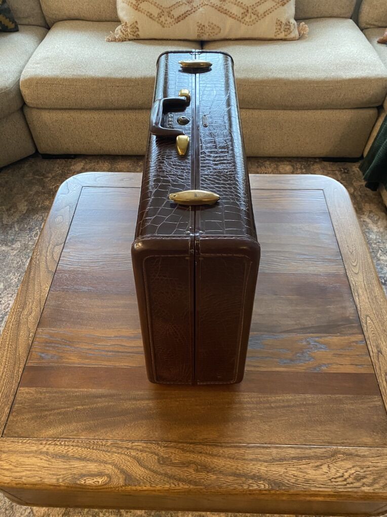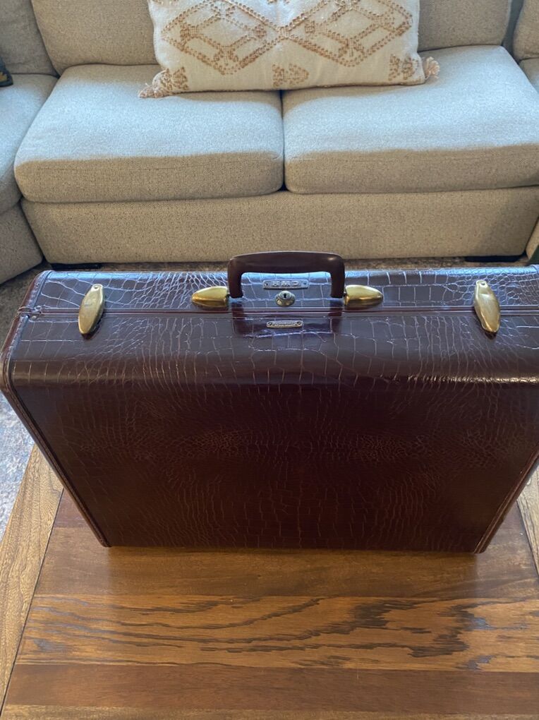 VenmoSamsonite Suitcase 4135 Faux Alligator. The 4135 is a vintage mid-century hardside suitcase that was manufactured in the 1940’s and 50’s. It measures approximately 24 x 18 x 7 to 8 and is perfect for travel, collectors, and themed decor. Excellent condition, wear is commiserate with age. $75
