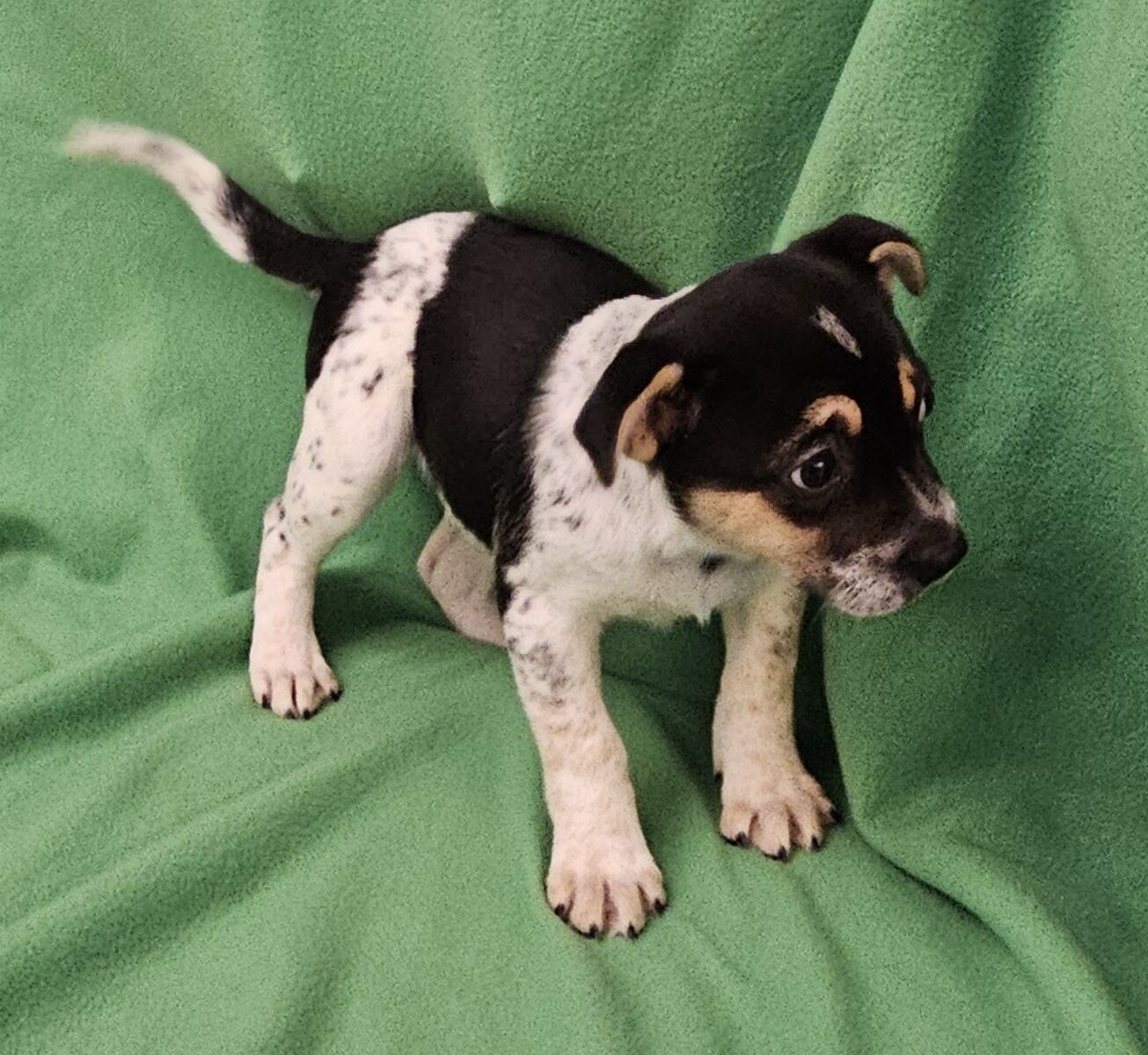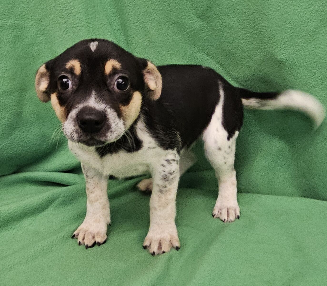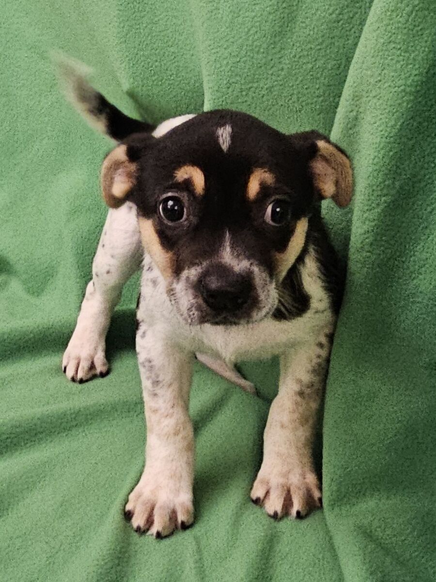 Phebe is available for adoption through Second Chance for Homeless Pets. She is part of the "Friends" litter that came into the shelter as strays. They are about 10 weeks old. Our best guess is they are Australian Cattle Dog mixes. They are are adorable and friendly. They are all looking for new homes.