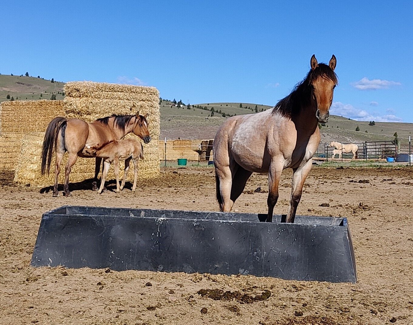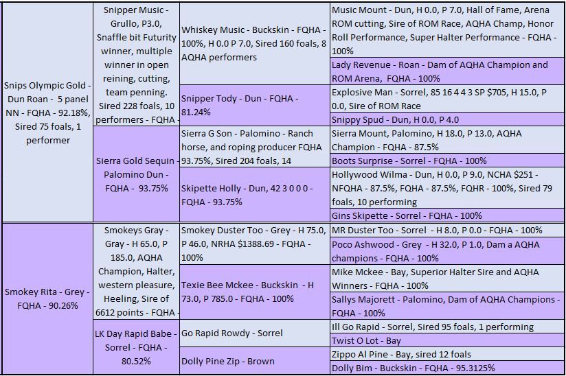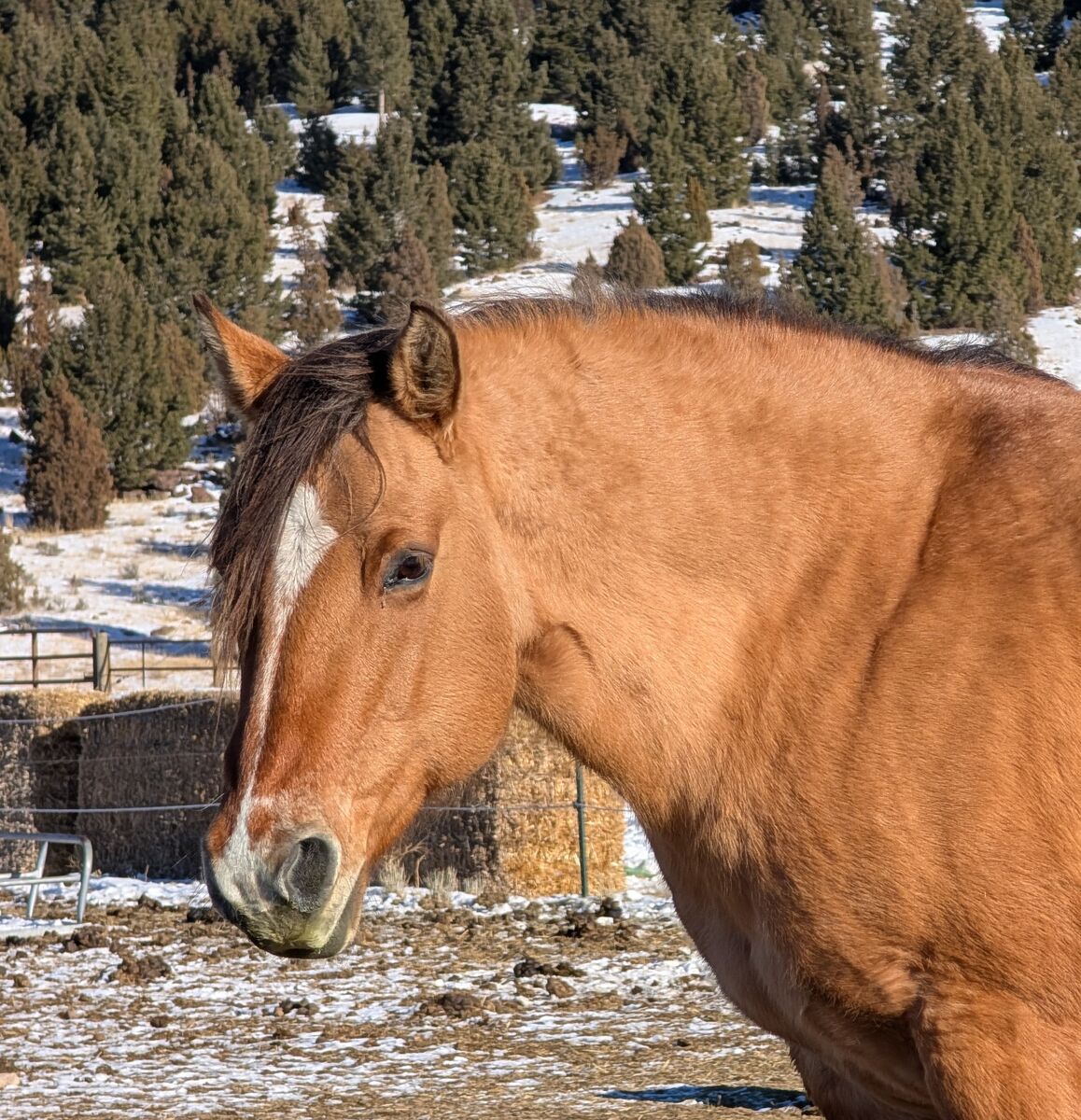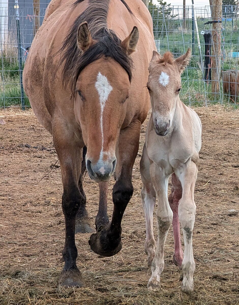 "Dolly" is by the famous stud, Snips Olympic Gold, that stood down south for many years producing amazing horses. She goes back to the famous Smokeys Gray stallion. She had 30 days riding mid life and was going well at that time. She is a very likeable mare and has produced some really nice foals for different ranches in the past. All of her foals with us have been well built, good personality and conformationally correct. She can be hard to catch, is not very good with the farrier, but does maintain her feet well on her own. She is good to vaccinate, ultrasound, worm, and foal out. Possible breed lease.