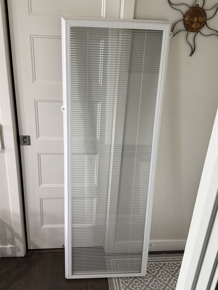 VenmoThis is a set of two blinds that cover the windows on doors. The measurements of the doors they were on are 21.5 x 65.5 inches, that includes the frame. They are about 8 years old and in great shape, I have the hardware they were installed with.