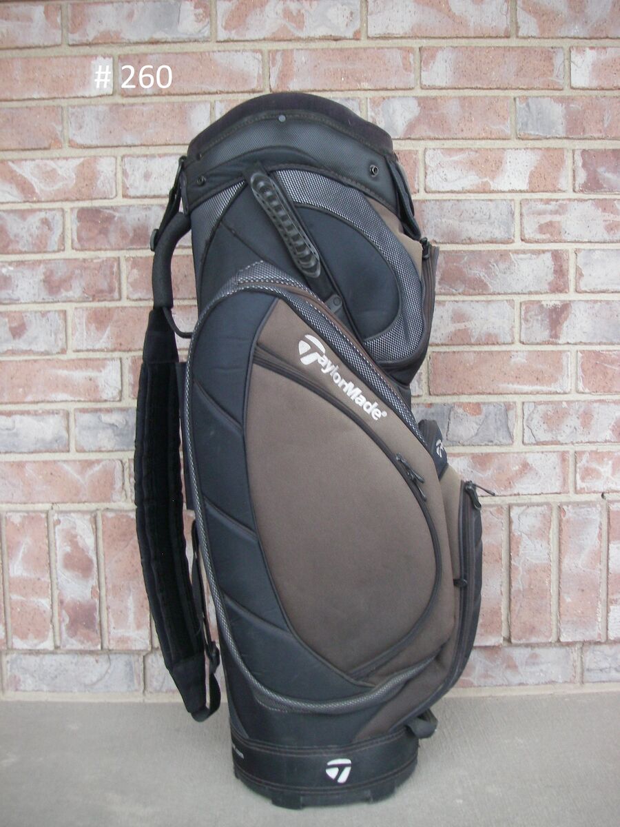 #260, TAYLORMADE, Cart Bag, BLACK / BROWN, Handle & Shoulder Strap, 7 Dividers, 7 Pockets, Good Condition, $45