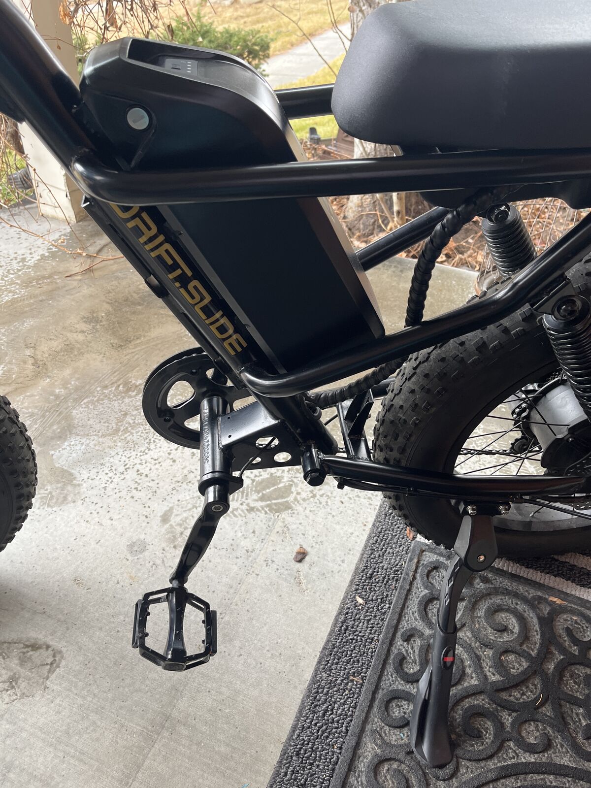 VenmoWe tuned up the bike because the bike had not as strong brakes, but the brakes are super strong and the front wheel had a constant problem of being flat & it is tuned up now. There are no problems with the Drift Slide it is in good condition. Barely used & pretty much brand new. Can go up to 28-35 mph without pedaling. Pedals work to puh bike forward if out of battery. Has a 50-60 mile range on one charge.