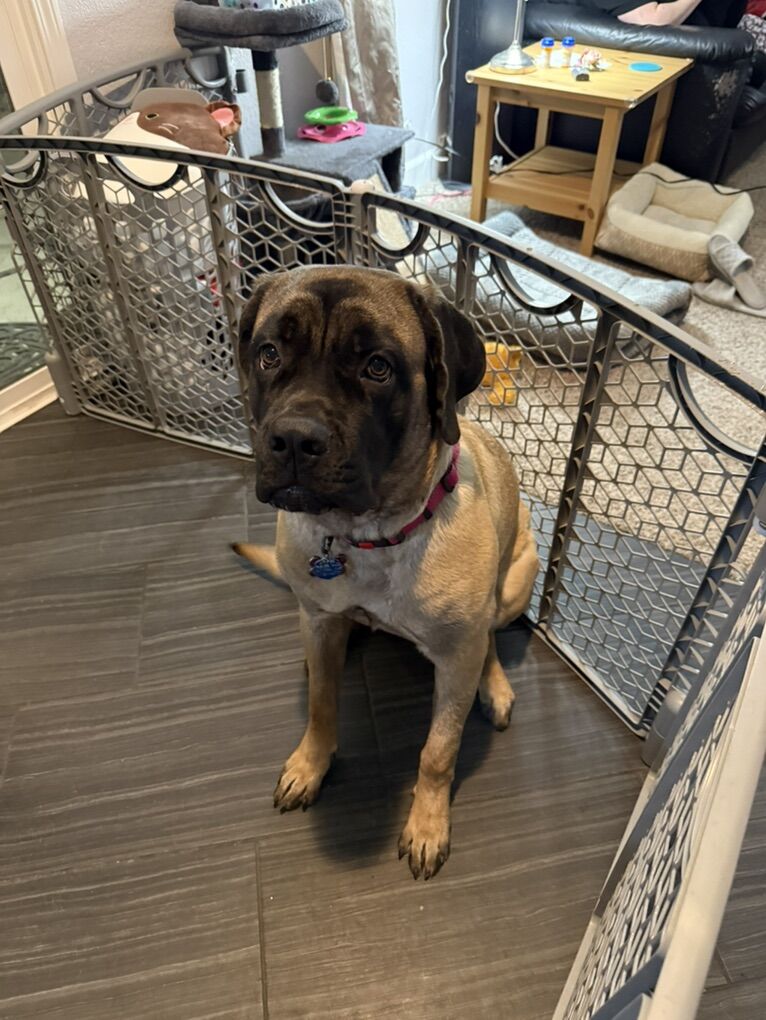She is a sweet 9 month old pure bred English Mastiff born on May 15, 2025.