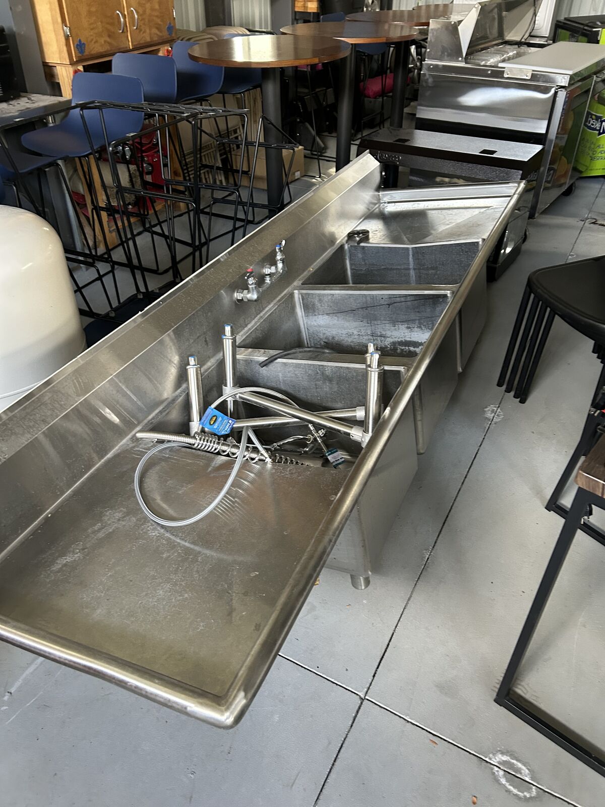 Regency three compartment sink 106"x24"x18"x14" comes with sprayet.